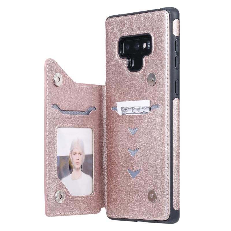 Θήκη προστασίας για Galaxy Note 9 με ανάγλυφο σχέδιο, αντικραδασμική, με θήκες για κάρτες & κορνίζα φωτογραφιών & βάση στήριξης (Ροζ χρυσός)