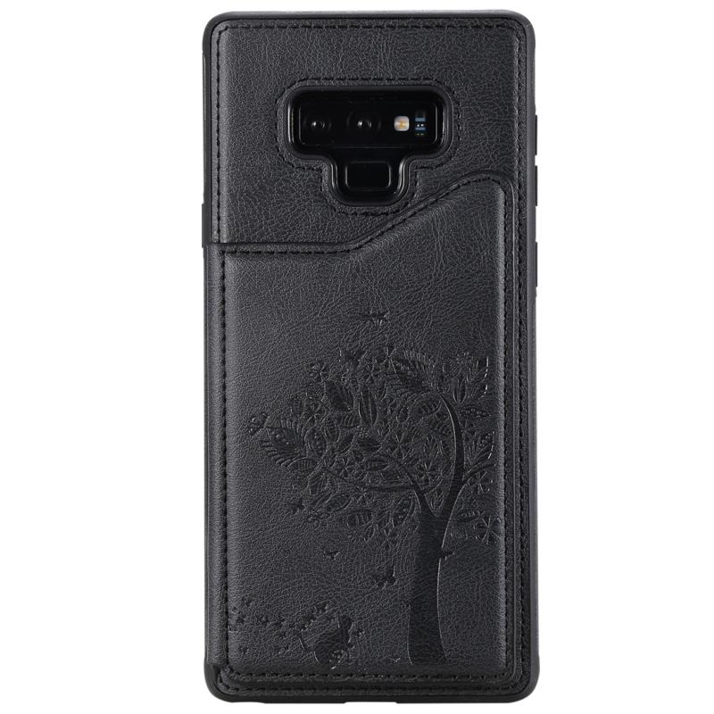 For Galaxy Note 9 Cat Tree Embossing Pattern Shockproof Protective Case with Card Slots & Photo Frame(Black)