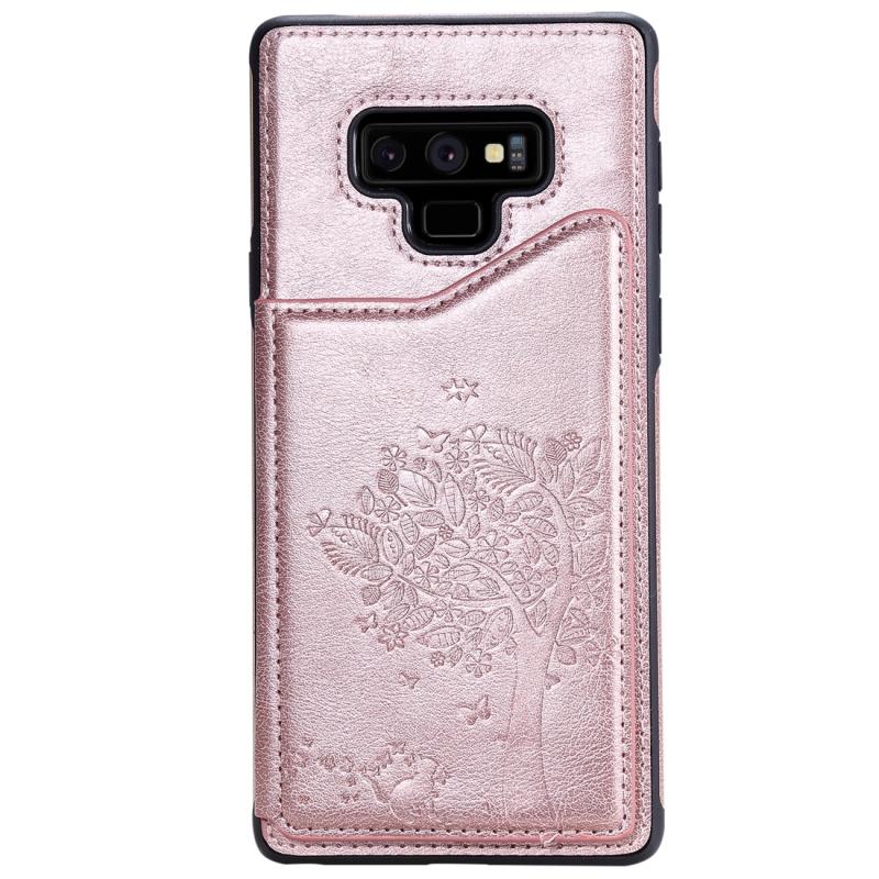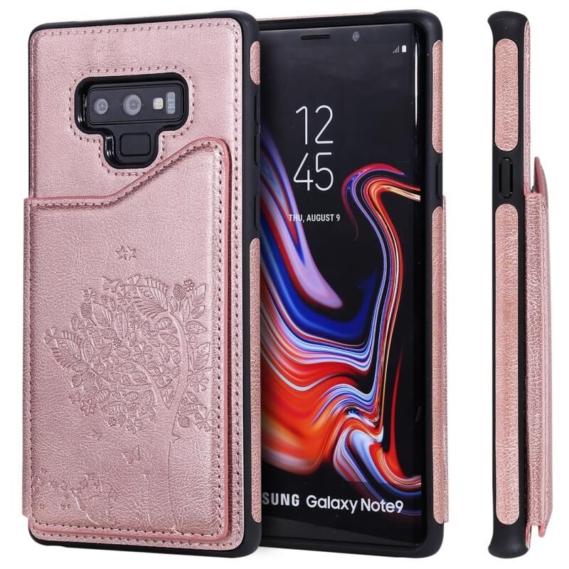 For Galaxy Note 9 Cat Tree Embossing Pattern Shockproof Protective Case with Card Slots & Photo Frame(Rose Gold)