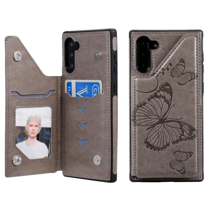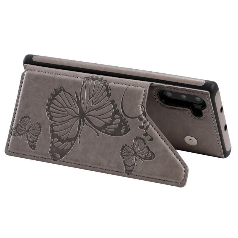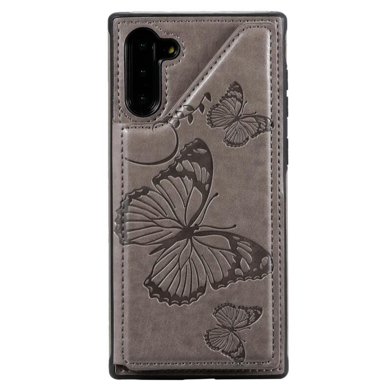 For Galaxy Note10 Butterfly Embossing Pattern Shockproof Protective Case with Holder & Card Slots & Photo Frame(Gray)