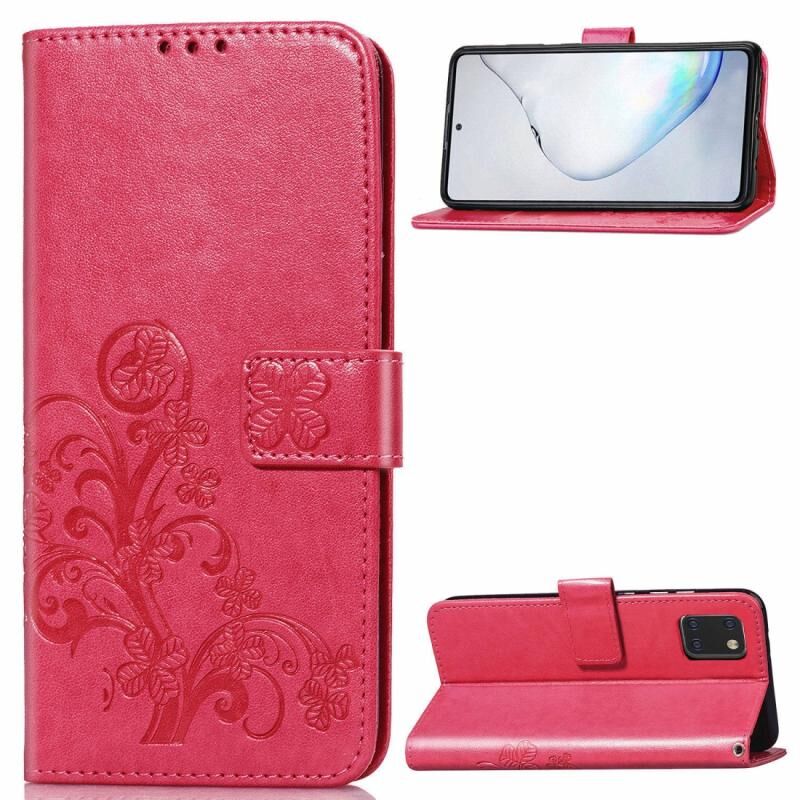 Θήκη δέρματος με σχέδιο πιεσμένων λουλουδιών τριφυλλιού για Galaxy Note10 Lite/A81/M60s με βάση στήριξης & υποδοχές καρτών & πορτοφόλι & λουρί χειρός (Ροζ)