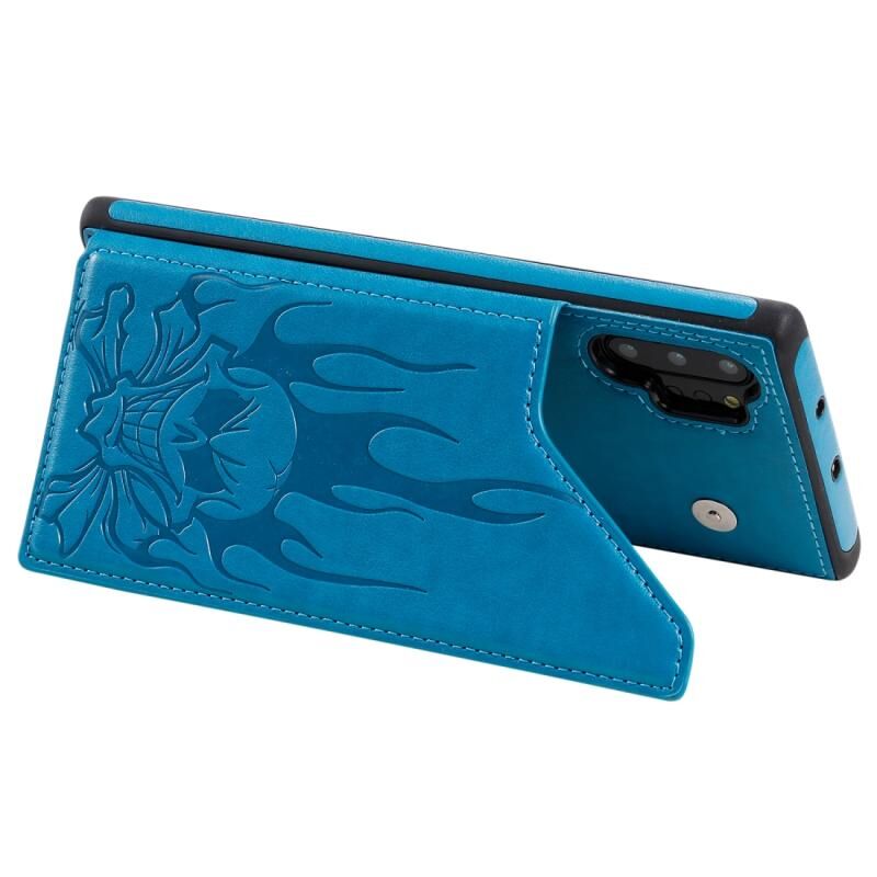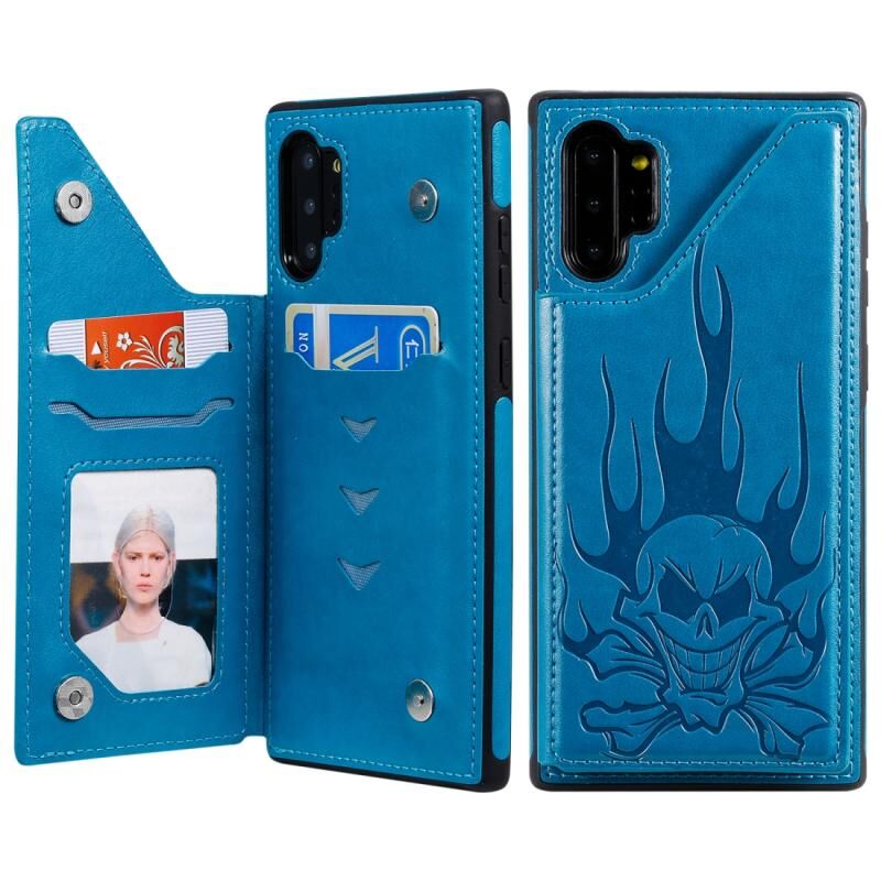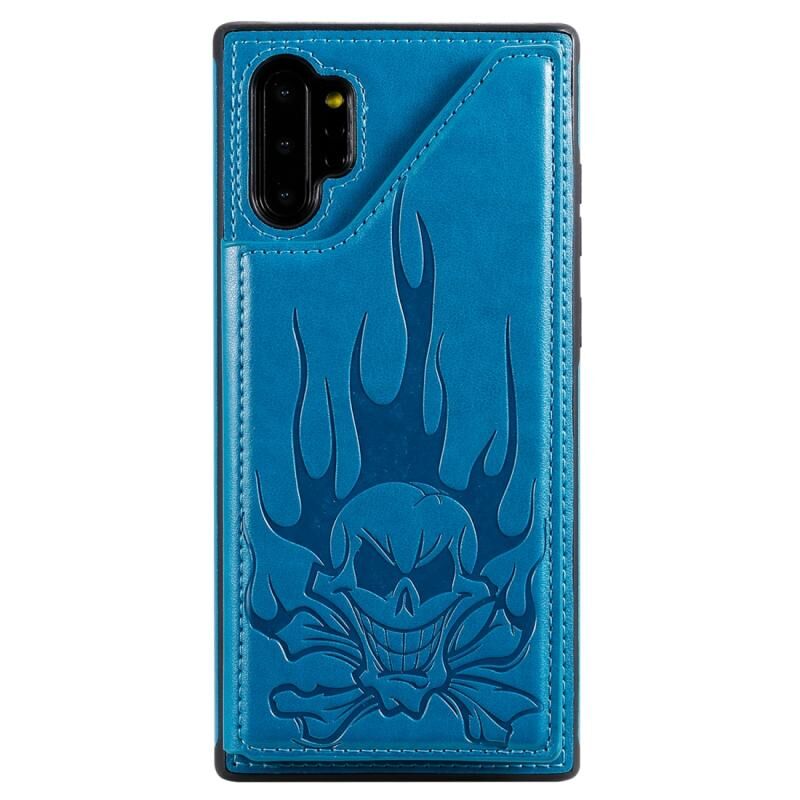Θήκη προστασίας με ανάγλυφο σχέδιο κρανίου, αντικραδασμική για Galaxy Note10+ με βάση στήριξης & θήκες καρτών & πορτοφόλι (Μπλε)