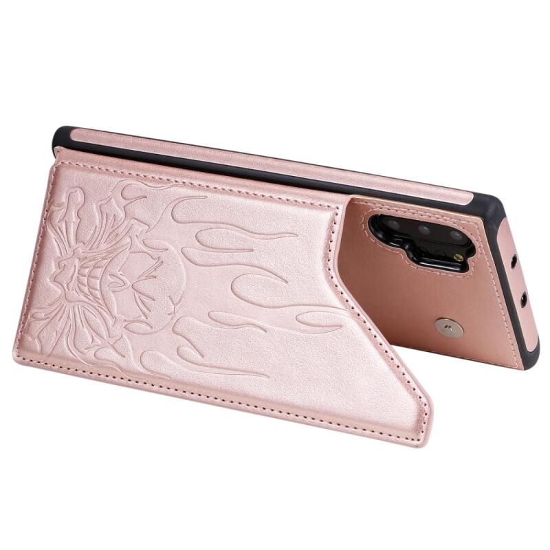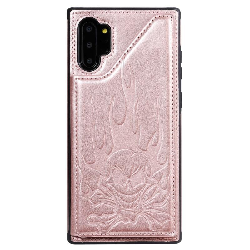 Θήκη προστασίας με ανάγλυφο σχέδιο κρανίου, αντικραδασμική για Galaxy Note10+ με βάση στήριξης & θήκες καρτών & πορτοφόλι (Ροζ χρυσός)