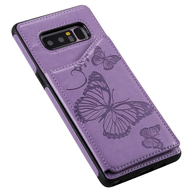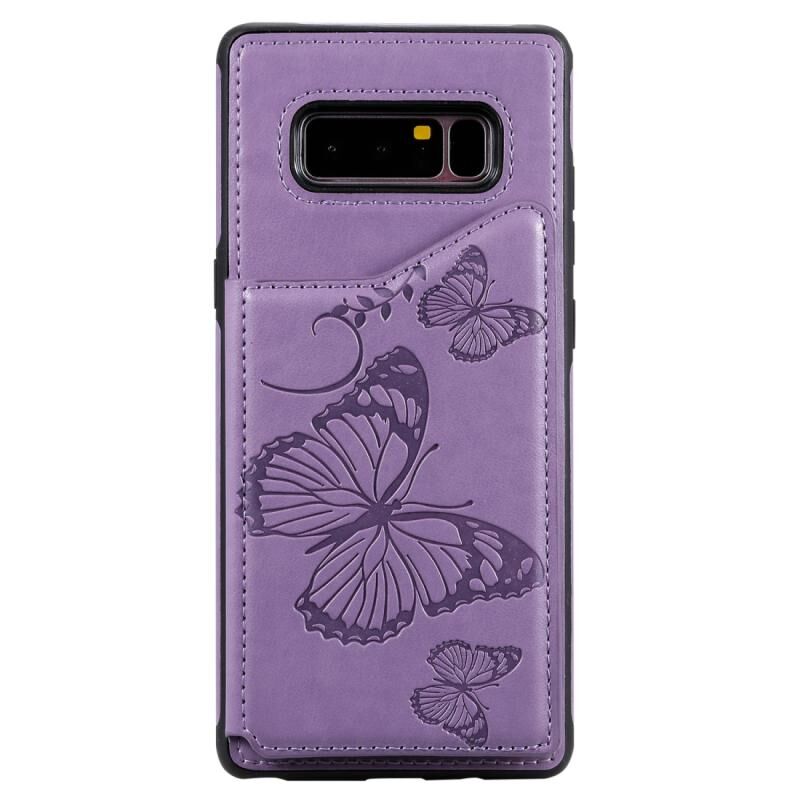 Θήκη προστασίας με σχέδιο πεταλούδας σε ανάγλυφο για Galaxy Note8, ανθεκτική σε κρούσεις, με βάση στήριξης, θήκες για κάρτες & κορνίζα φωτογραφιών (Καφέ)