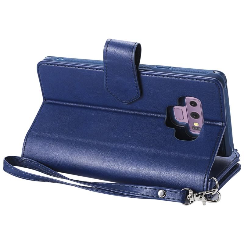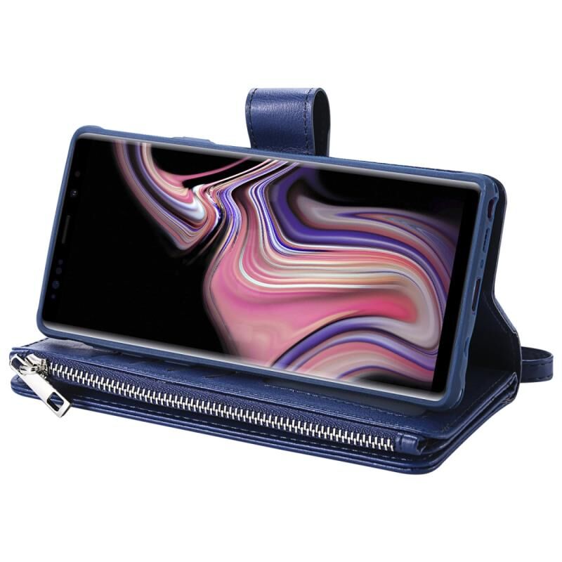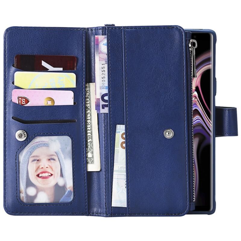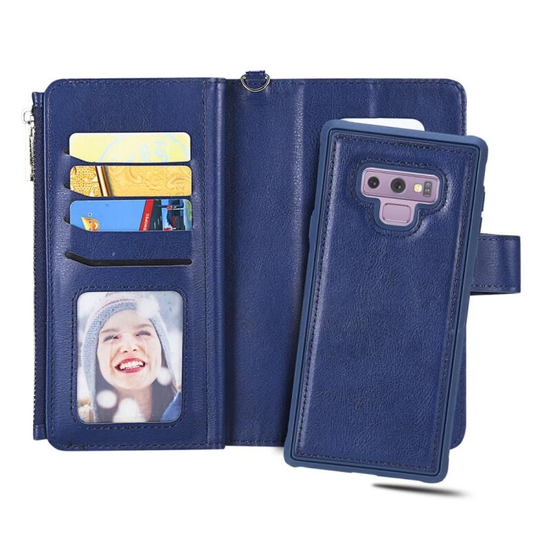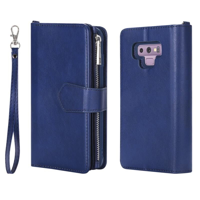 Για Galaxy Note9 2 σε 1 Αμιγές χρώμα φερμουάρ Shockproof προστατευτική θήκη με υποδοχές για κάρτες & βραχίονα & φωτογραφική θήκη & λειτουργία πορτοφόλι (μπλε)