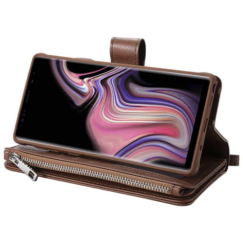 Για Galaxy Note9 2 σε 1 Αμιγές χρώμα φερμουάρ Shockproof προστατευτική θήκη με υποδοχές για κάρτες & βραχίονα & φωτογραφική θήκη & λειτουργία πορτοφόλι (καφέ)