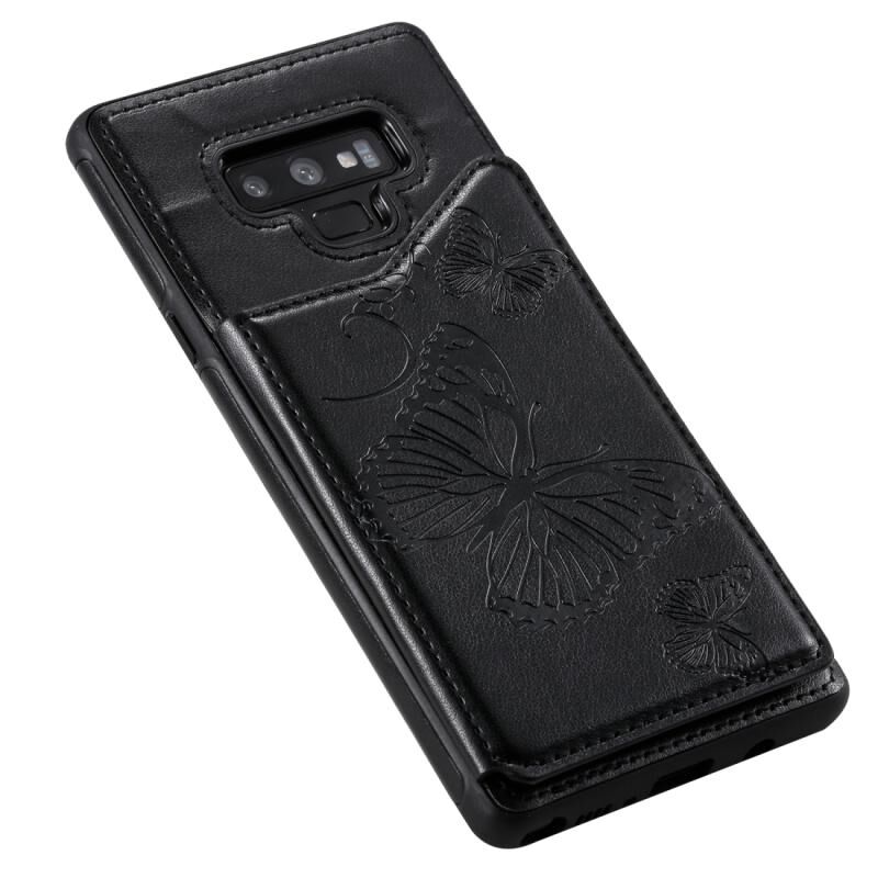 Θήκη προστασίας με ανάγλυφο σχέδιο πεταλούδας για Galaxy Note9, ανθεκτική σε κρούσεις, με βάση στήριξης, θήκες για κάρτες & κορνίζα φωτογραφιών (Μωβ)