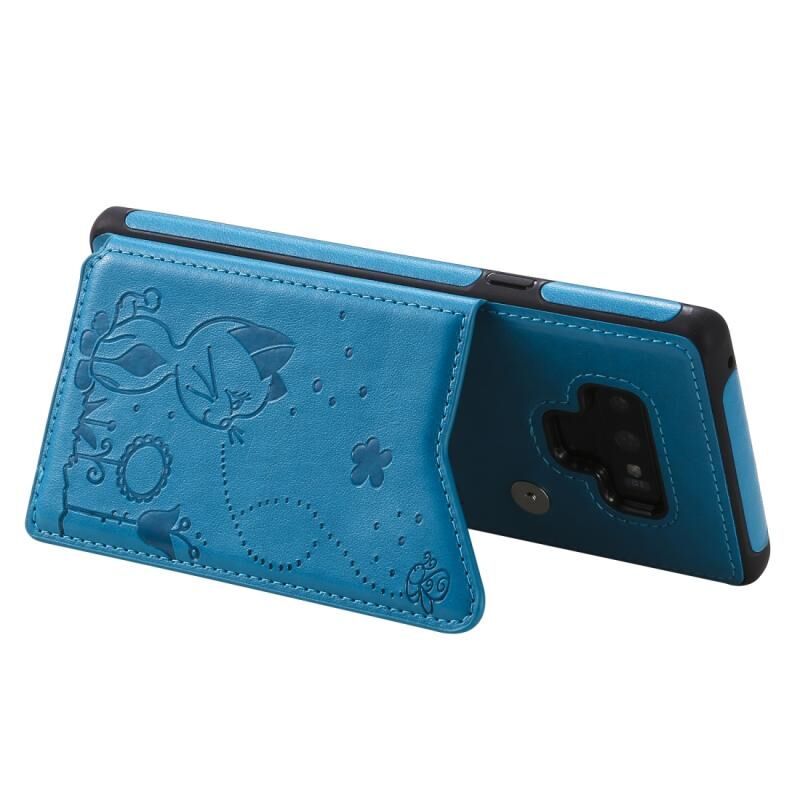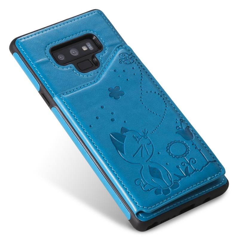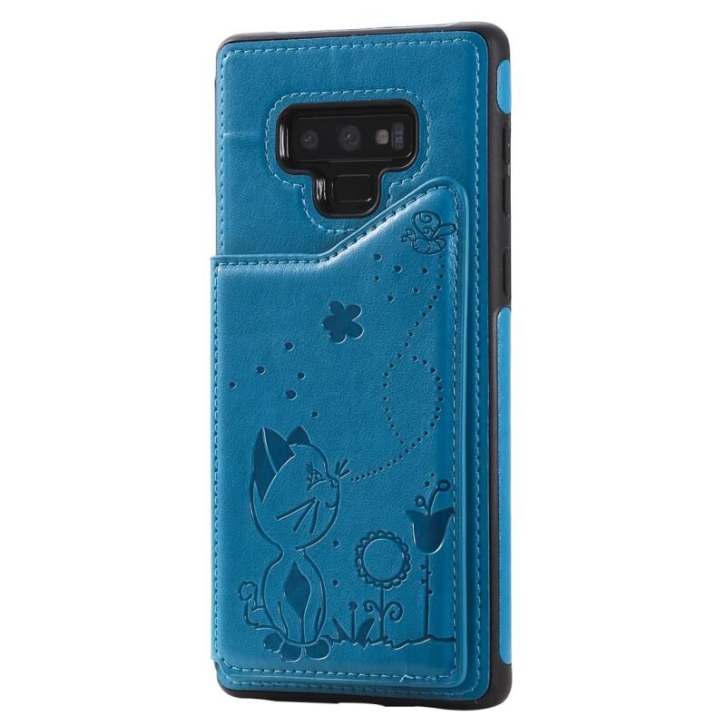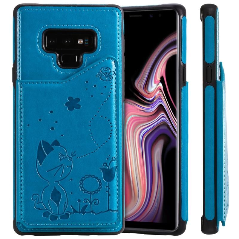 Θήκη προστασίας με ανάγλυφο σχέδιο μέλισσας για Galaxy Note9, ανθεκτική σε κρούσεις, με θήκες για κάρτες & κορνίζα φωτογραφιών (Μπλε)
