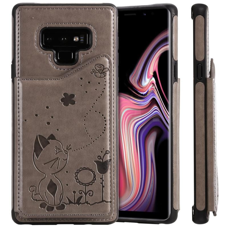 Θήκη προστασίας με ανάγλυφο σχέδιο μέλισσας για Galaxy Note9, ανθεκτική σε κρούσεις, με θήκες για κάρτες & κορνίζα φωτογραφιών (Γκρι)