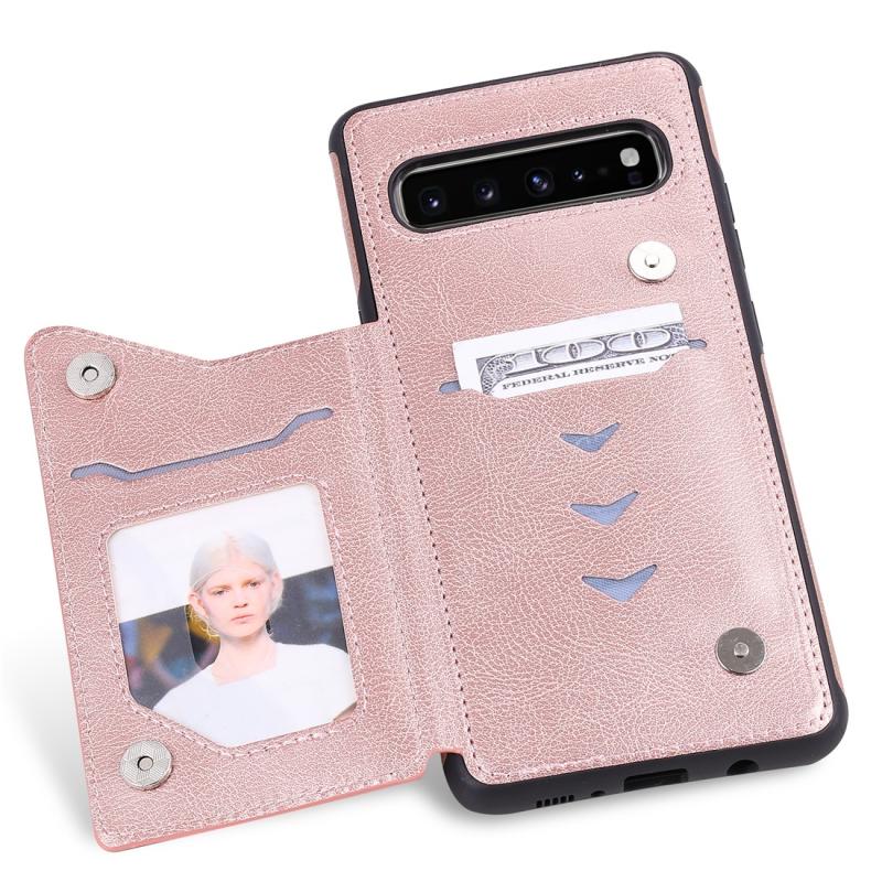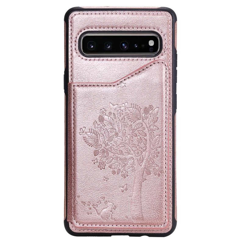 Θήκη προστασίας με ανάγλυφο σχέδιο για Galaxy S10 5G, ανθεκτική σε κρούσεις, με θήκες για κάρτες & κορνίζα φωτογραφίας (Ροζ χρυσός)