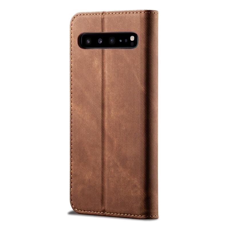 Για Galaxy S10 5G Denim Texture Casual Style Οριζόντια Flip δερμάτινη θήκη με θήκη & υποδοχές για κάρτες & πορτοφόλι (καφέ)