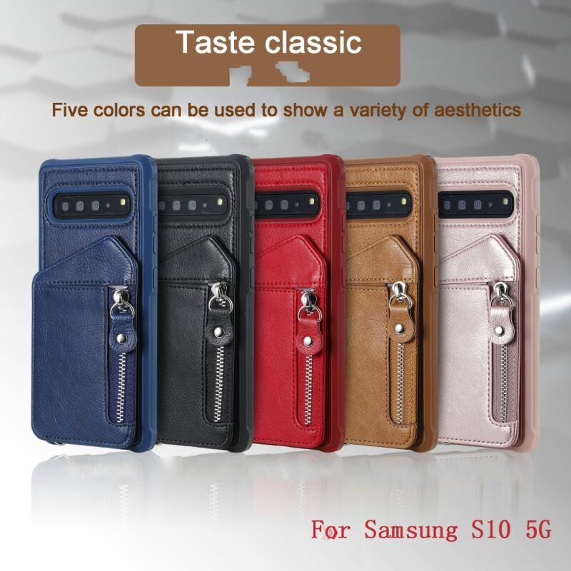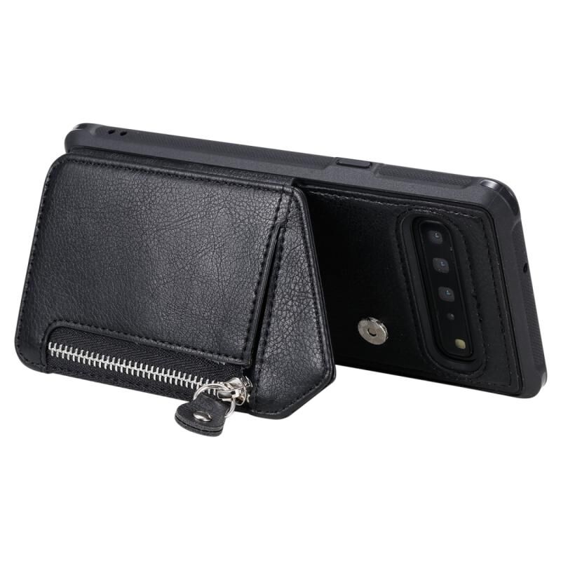 Για Galaxy S10 5G Διπλή πόρπες φερμουάρ Shockproof πίσω κάλυμμα προστατευτική θήκη με υποδοχές για κάρτες & υποδοχές για κάρτες & πορτοφόλι & κορδόνι & κορνίζες για φωτογραφίες (μαύρο)