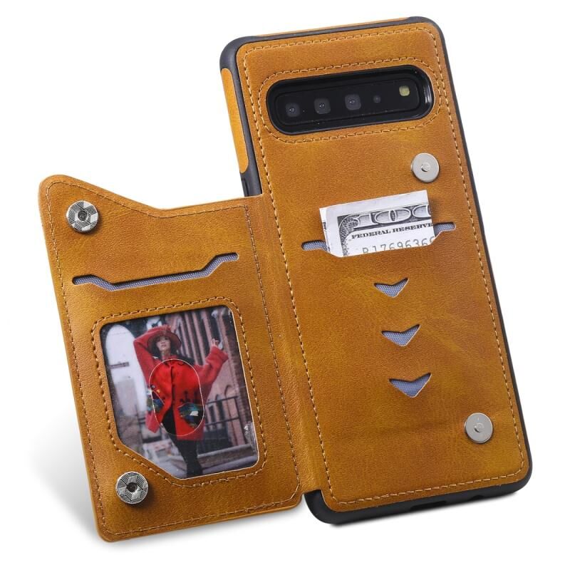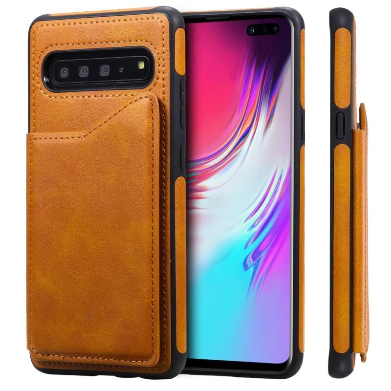 Για Galaxy S10 5G Αδιάβροχη θήκη με υφή μοσχαριού Προστατευτική θήκη με θήκη & υποδοχές καρτών & πλαίσιο (καφέ)