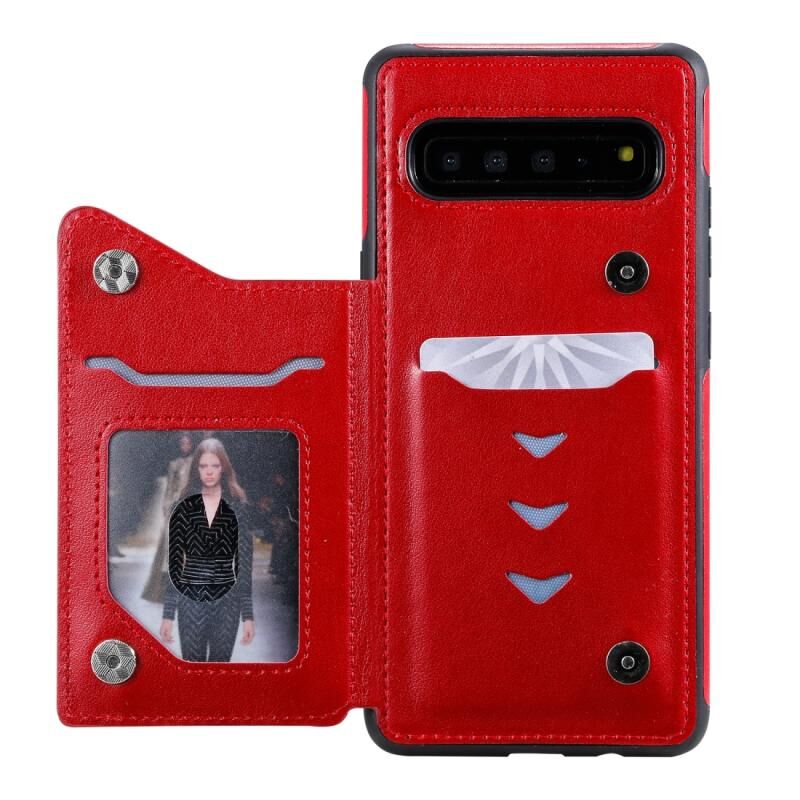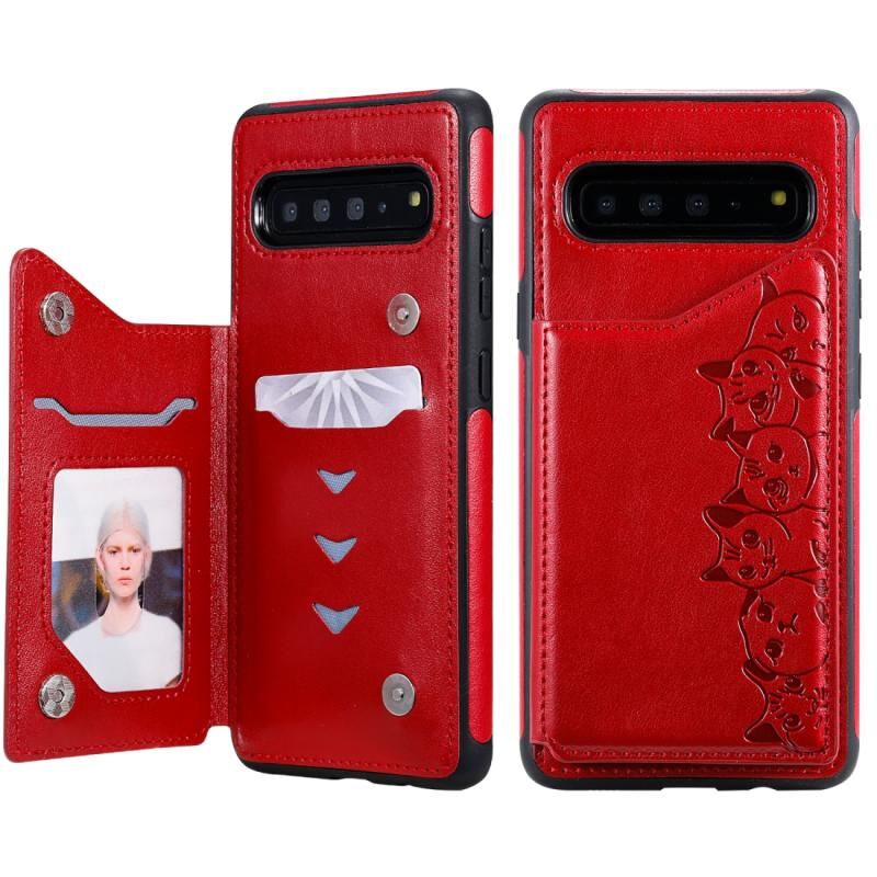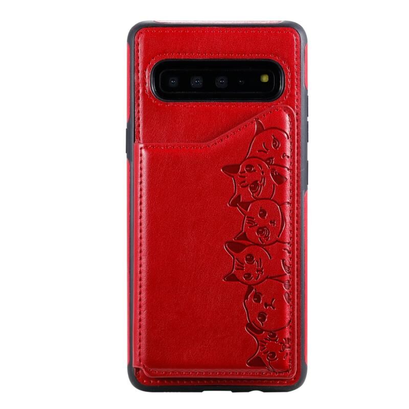 Θήκη προστασίας με ανάγλυφο σχέδιο έξι γατών για Galaxy S10 5G, με βάση στήριξης & θήκες καρτών & κορνίζα φωτογραφιών (Μαύρο)