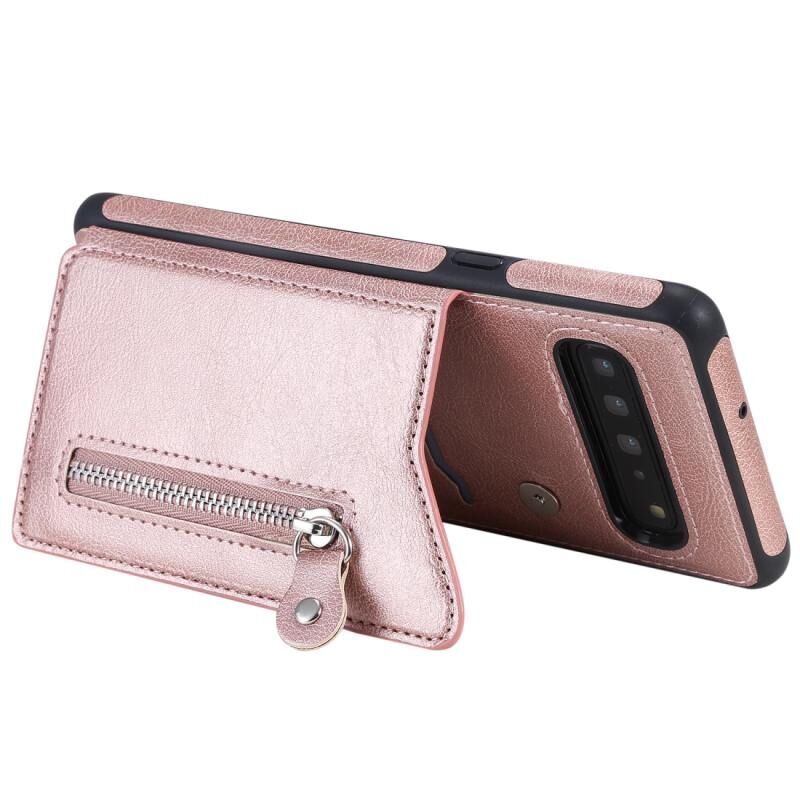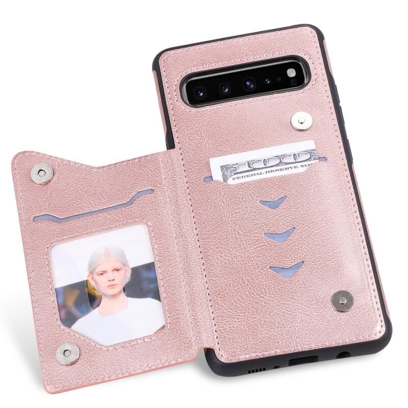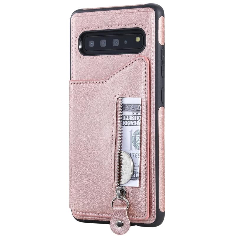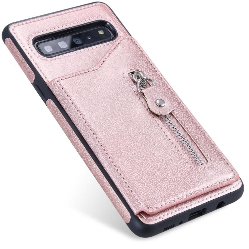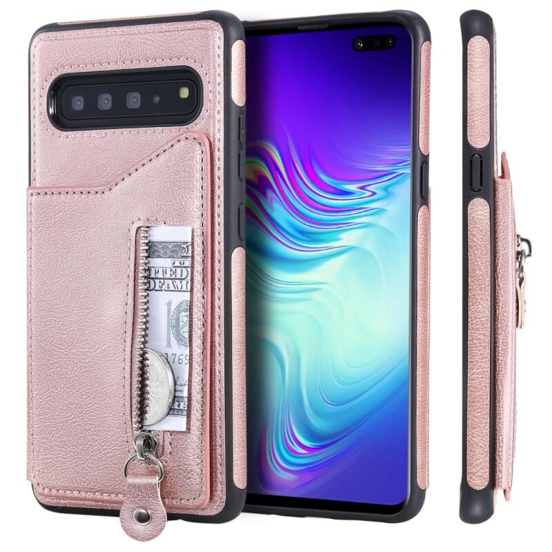 Για Galaxy S10 5G Αμιγές χρώμα διπλό πόρπη φερμουάρ Shockproof προστατευτική θήκη (Rose Gold)