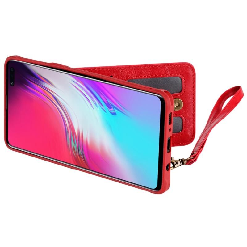 Για Galaxy S10 5G Κάθετη Flip Wallet Shockproof πίσω κάλυψη προστατευτική θήκη με υποδοχή & υποδοχές για κάρτες & κορδόνι & φωτογραφίες πλαίσια (κόκκινο)