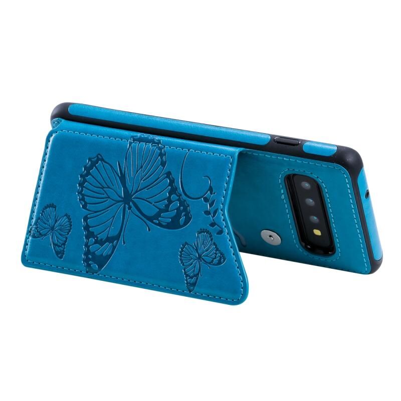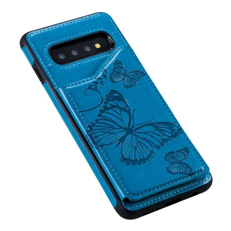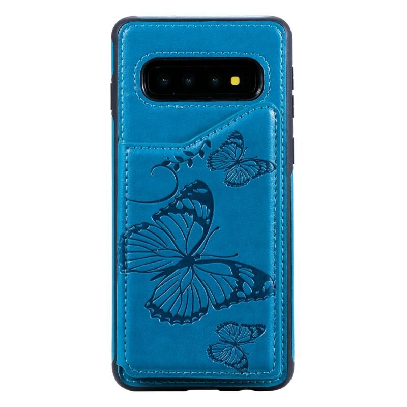 Θήκη προστασίας με ανάγλυφο σχέδιο πεταλούδας για Galaxy S10, ανθεκτική σε κρούσεις, με βάση στήριξης, θήκες για κάρτες & κορνίζα φωτογραφιών (Μπλε)