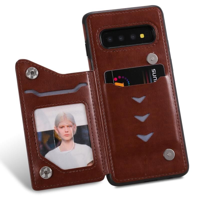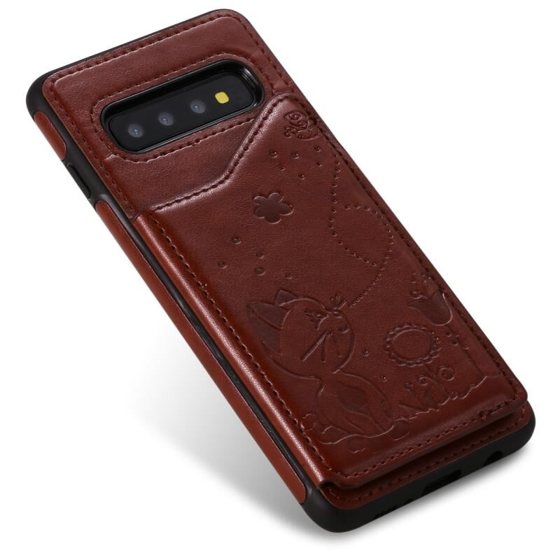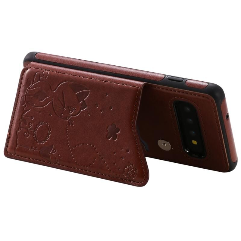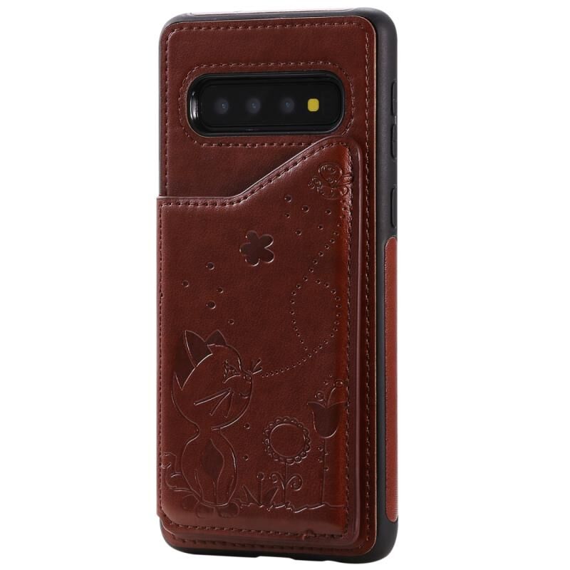Θήκη προστασίας με ανάγλυφο σχέδιο Cat Bee για Galaxy S10, ανθεκτική στις κρούσεις, με θήκες για κάρτες & κορνίζα φωτογραφιών (Καφέ)