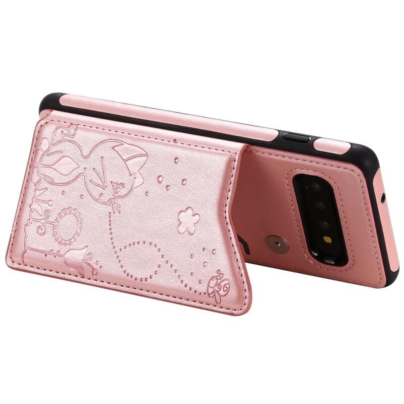 Θήκη προστασίας με ανάγλυφο σχέδιο Cat Bee για Galaxy S10, ανθεκτική στις κρούσεις, με θήκες για κάρτες & κορνίζα φωτογραφιών (Ροζ χρυσός)