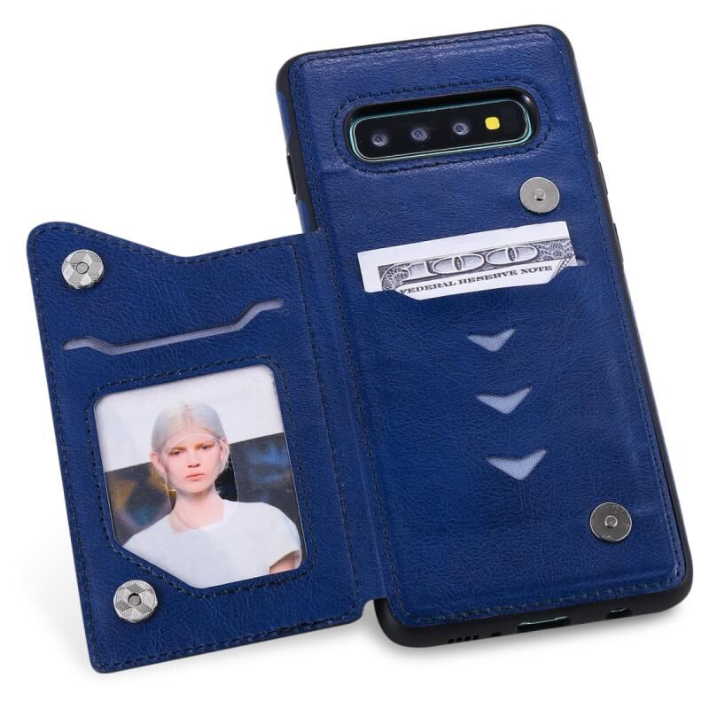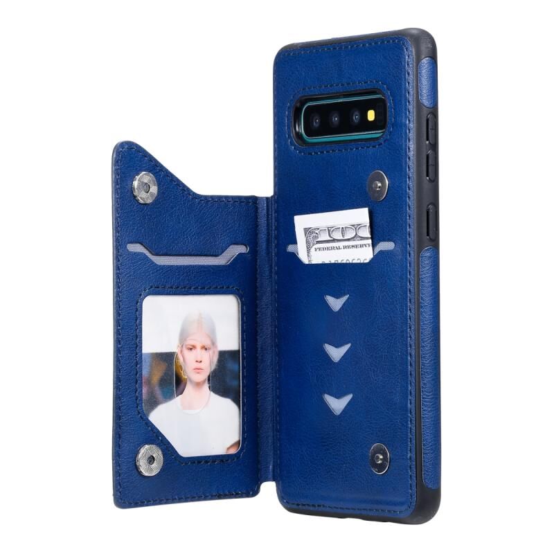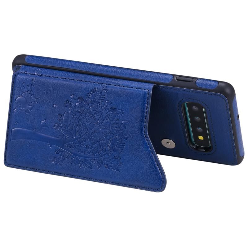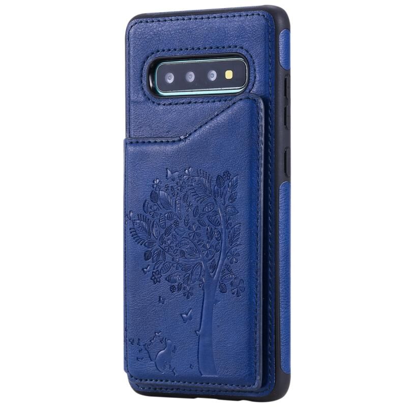 Θήκη προστασίας για Galaxy S10+ με σχέδιο ανάγλυφου γατί, αντι-κραδασμική, με θήκες για κάρτες & κορνίζα φωτογραφιών & βάση στήριξης (Μπλε)