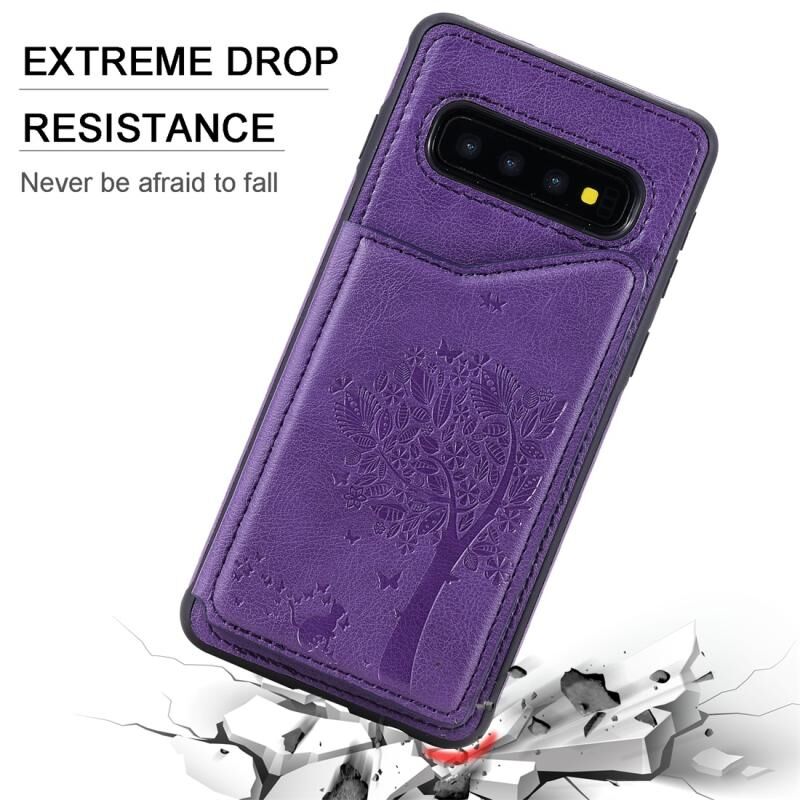 Θήκη προστασίας για Galaxy S10 με σχέδιο ανάγλυφου, αντικραδασμική, με θήκες για κάρτες & κορνίζα φωτογραφίας (Χρυσό ροζ)