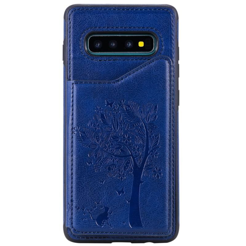 Θήκη προστασίας για Galaxy S10+ με σχέδιο ανάγλυφου γατίσματος, αντικραδασμική με θήκες για κάρτες & κορνίζα φωτογραφίας (Μπλε)