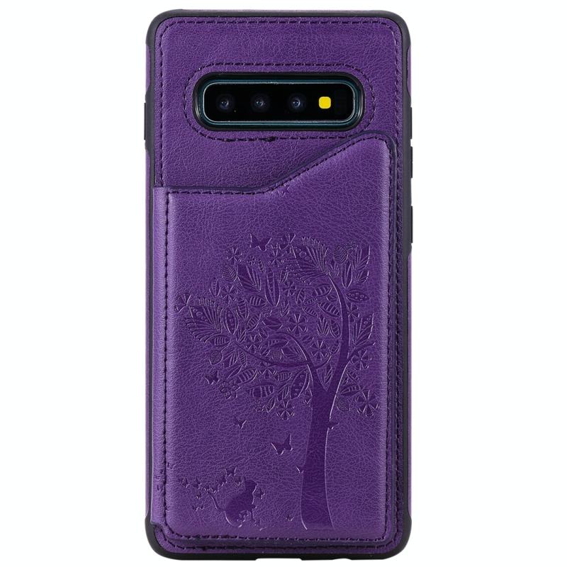 Θήκη προστασίας για Galaxy S10+ με σχέδιο ανάγλυφου γατίσματος, αντικραδασμική με θήκες για κάρτες & κορνίζα φωτογραφίας (Μωβ)