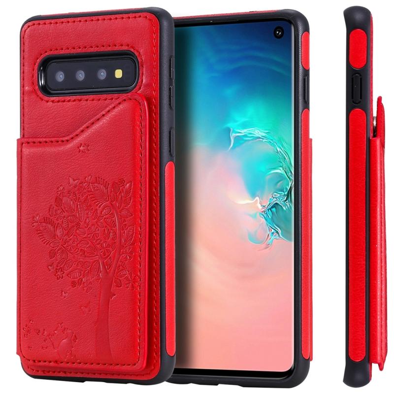 Θήκη προστασίας για Galaxy S10 με σχέδιο ανάγλυφου, αντικραδασμική, με θήκες για κάρτες & κορνίζα φωτογραφίας (Χρυσό ροζ)