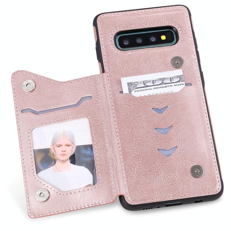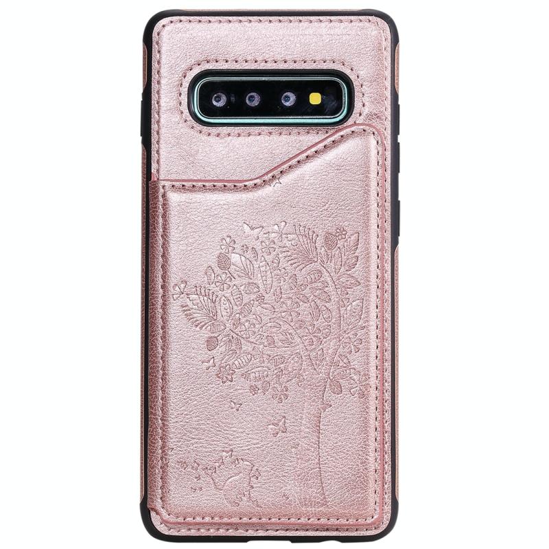 Θήκη προστασίας για Galaxy S10+ με σχέδιο ανάγλυφου γατίσματος, αντικραδασμική με θήκες για κάρτες & κορνίζα φωτογραφίας (Ροζ χρυσός)