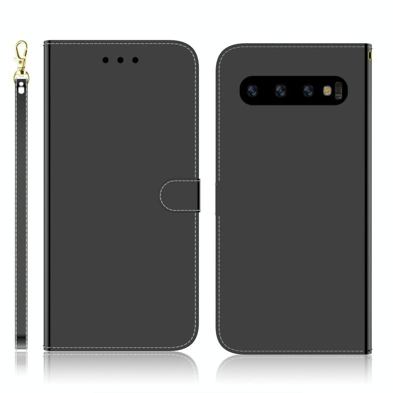 Για Galaxy S10+ Απομιμητική επιφάνεια καθρέφτη Οριζόντια Flip δερμάτινη θήκη με θήκη & υποδοχές για κάρτες & πορτοφόλι & κορδόνι (Μαύρο)
