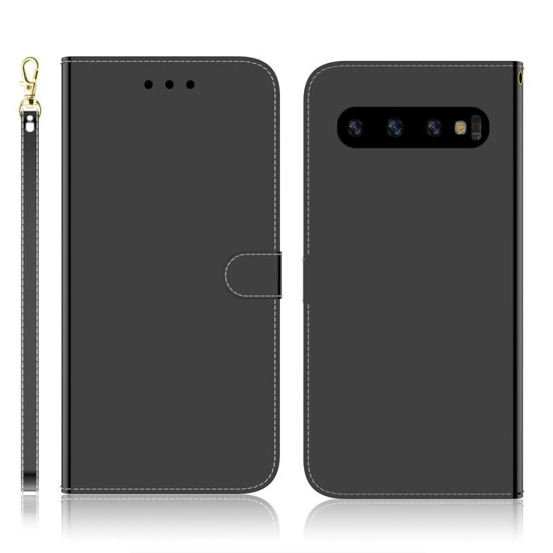 Για Galaxy S10 Απομιμητική επιφάνεια καθρέφτη Οριζόντια Flip δερμάτινη θήκη με θήκη & υποδοχές για κάρτες & πορτοφόλι & κορδόνι (Μαύρο)