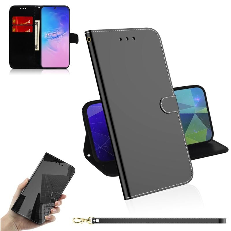Για Galaxy S10 Lite / A91 Lmitated Mirror Surface Horizontal Flip Leather Case με θήκη για κάρτες & υποδοχές & πορτοφόλι & κορδόνι (Μαύρο)