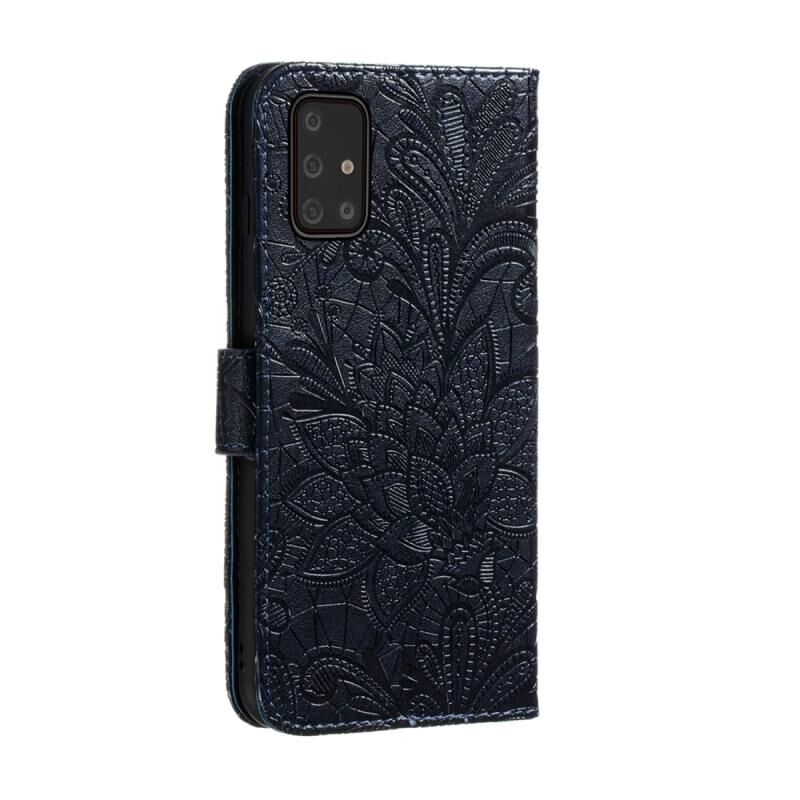 Θήκη δέρματος οριζόντιας αναδίπλωσης με δαντέλα και σχέδιο ανάγλυφου λουλουδιού για Galaxy S10 Lite / A91 / M80s με βάση, θήκες καρτών, πορτοφόλι, κορνίζα φωτογραφιών και κορδόνι (Σκούρο Μπλε)
