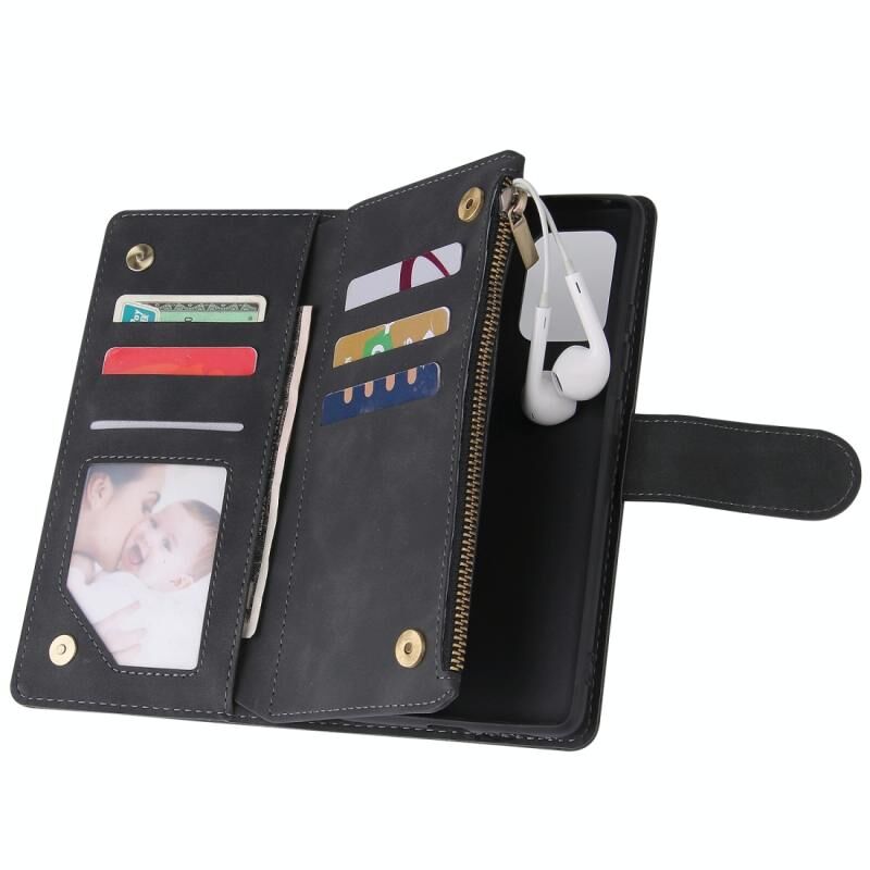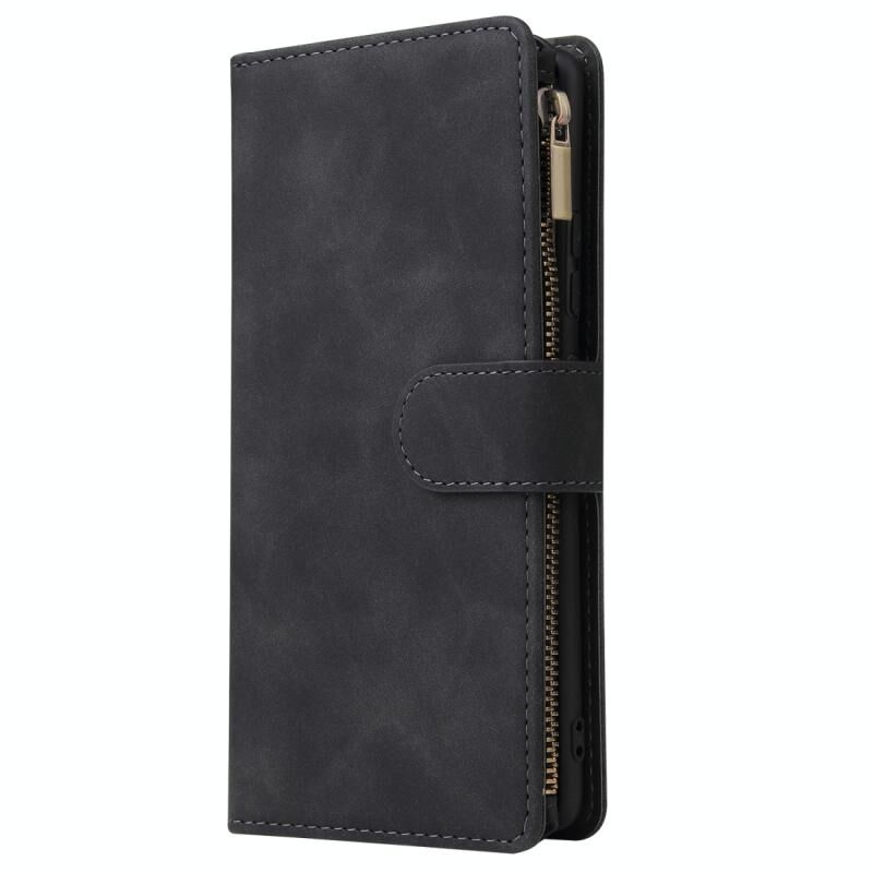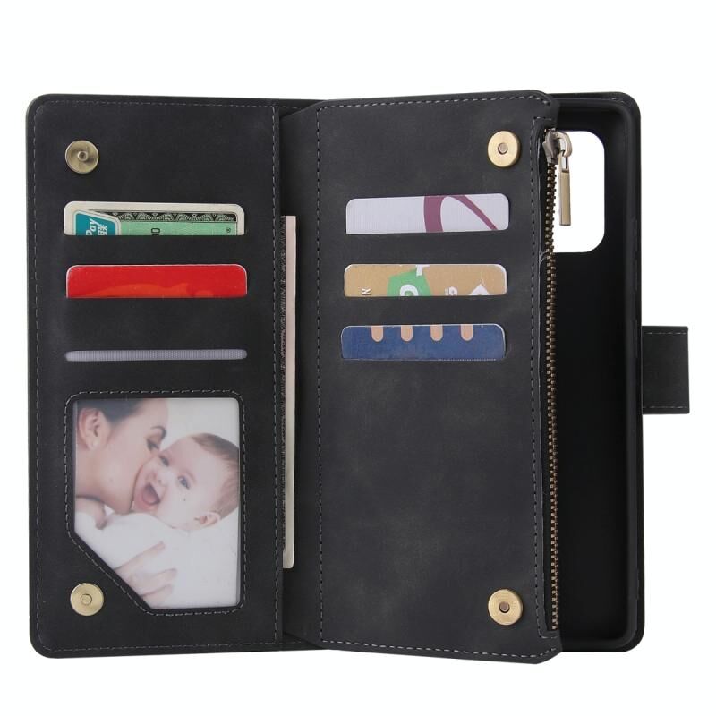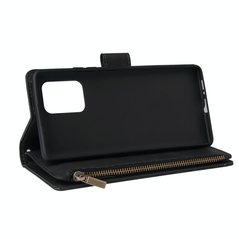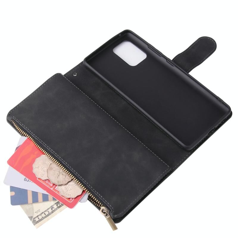 Για το Galaxy S10 Lite Πολυλειτουργική οριζόντια θήκη από δέρμα, με υποδοχή και θήκη για κάρτες, πορτοφόλι με φερμουάρ και κορνίζα φωτογραφιών (Μαύρο)