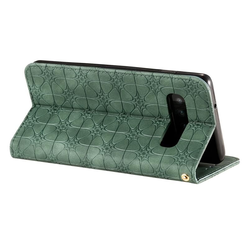 Θήκη δέρματος με μαγνητικό κλείσιμο, οριζόντια, με ανάγλυφο σχέδιο λουλουδιών για Galaxy S10, με βάση και θήκες για κάρτες (Σκούρο Πράσινο)