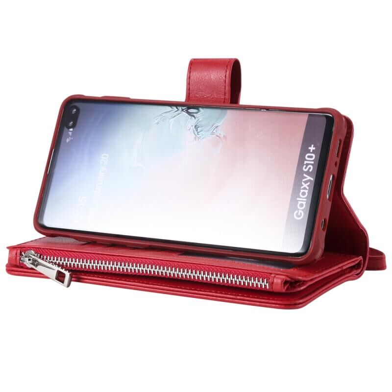 Για Galaxy S10 Plus 2 σε 1 Αμιγές χρώμα φερμουάρ Αδιάβροχη προστατευτική θήκη με υποδοχές για κάρτες & βραχίονα & υποδοχή φωτογραφιών & λειτουργία πορτοφολιού (κόκκινο)