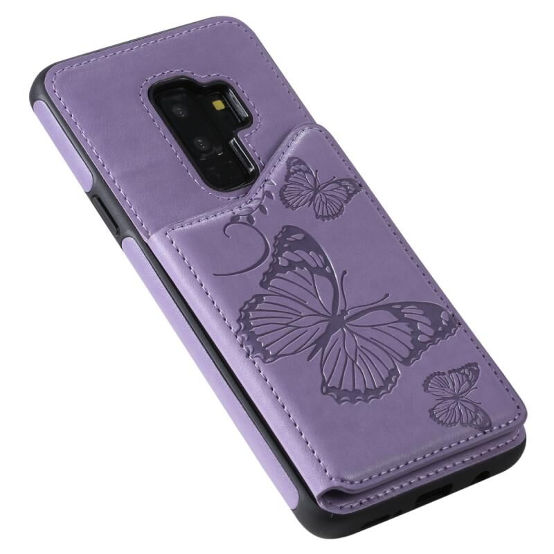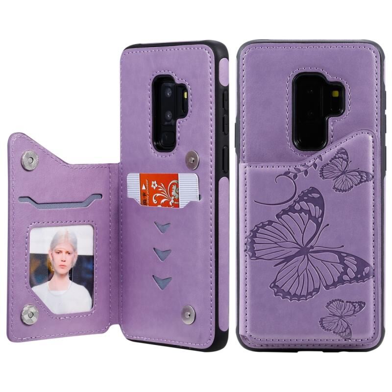 Θήκη προστασίας με ανάγλυφο σχέδιο πεταλούδας για Galaxy S10 Plus, ανθεκτική σε κρούσεις, με βάση στήριξης, θήκες για κάρτες και κορνίζα φωτογραφιών (Καφέ)