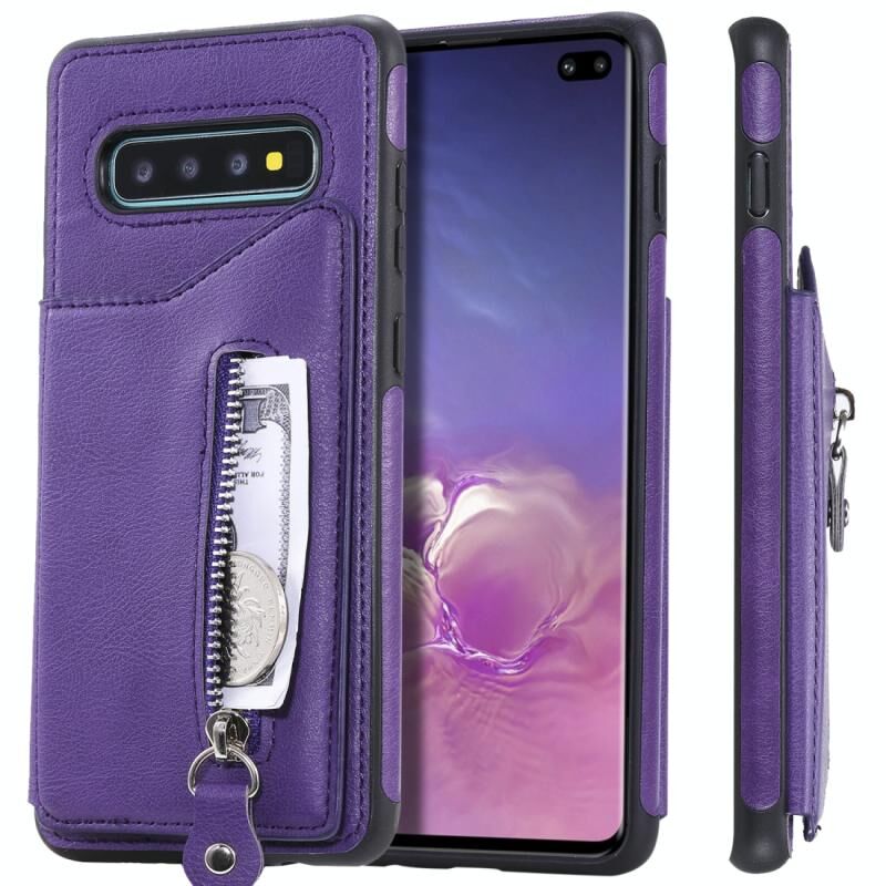 Για Galaxy S10 Plus Αμιγές χρώμα διπλό πόρπη φερμουάρ Shockproof προστατευτική θήκη (Μωβ)