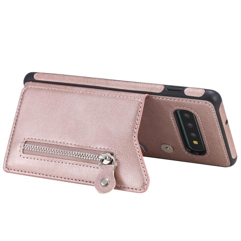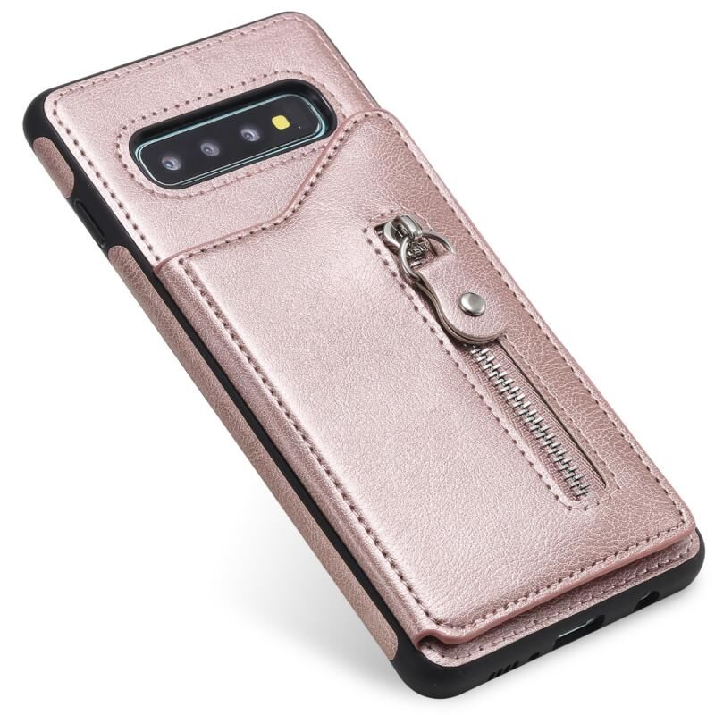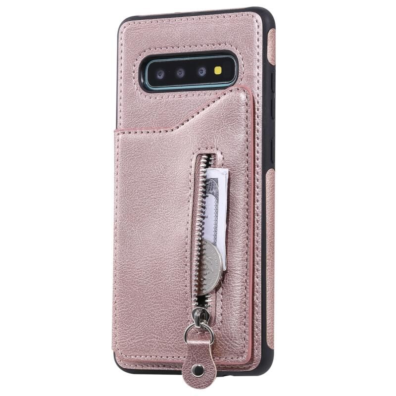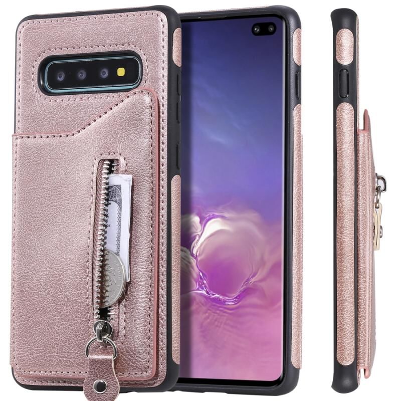 Για Galaxy S10 Plus Αμιγές χρώμα διπλό πόρπη φερμουάρ Shockproof προστατευτική θήκη (Rose Gold)