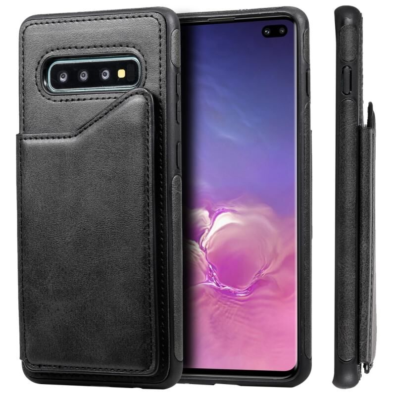 Για Galaxy S10+ Αδιάβροχη θήκη με υφή μοσχαριού με θήκη & υποδοχές καρτών & πλαίσιο (Μαύρο)