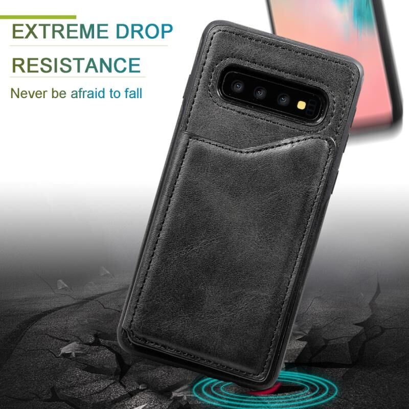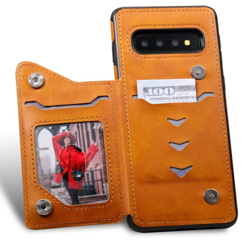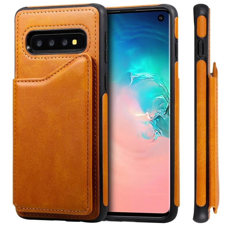 Για Galaxy S10 Αδιάβροχη θήκη με υφή μοσχαριού με θήκη & υποδοχές καρτών & πλαίσιο (καφέ)