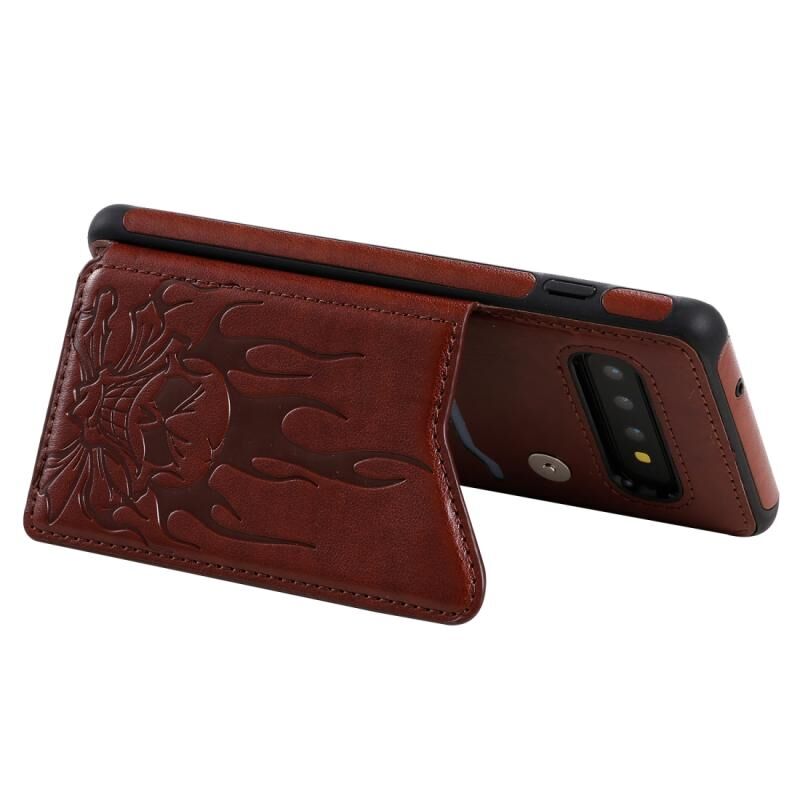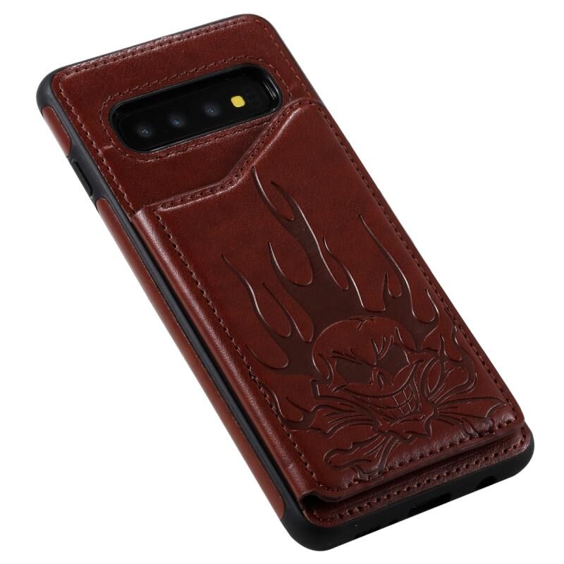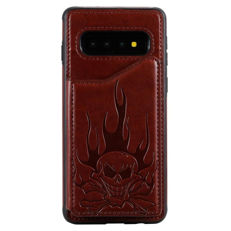 Θήκη προστασίας με ανάγλυφο σχέδιο κρανίου, αντικραδασμική για Galaxy S10, με βάση στήριξης, θήκες καρτών και πορτοφόλι (Μπλε)
