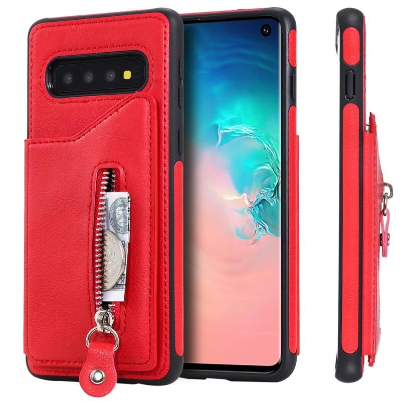 Για Galaxy S10 Αμιγές χρώμα διπλό πόρπη φερμουάρ Shockproof προστατευτική θήκη (Κόκκινο)