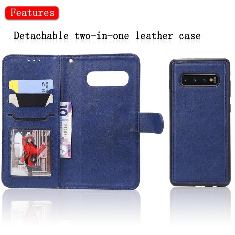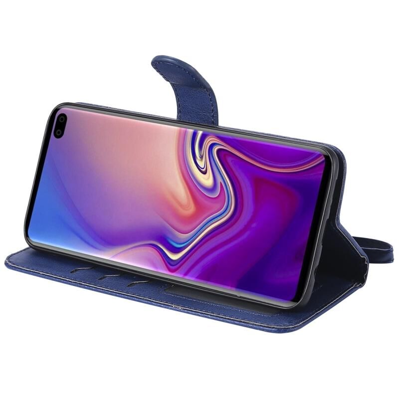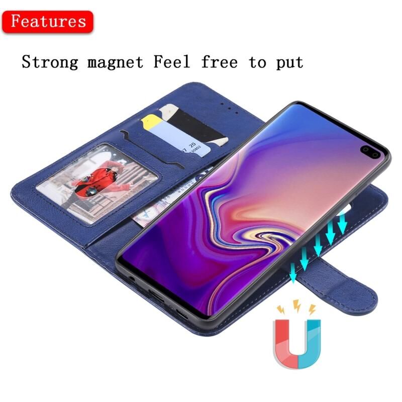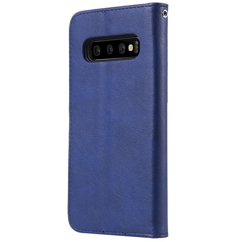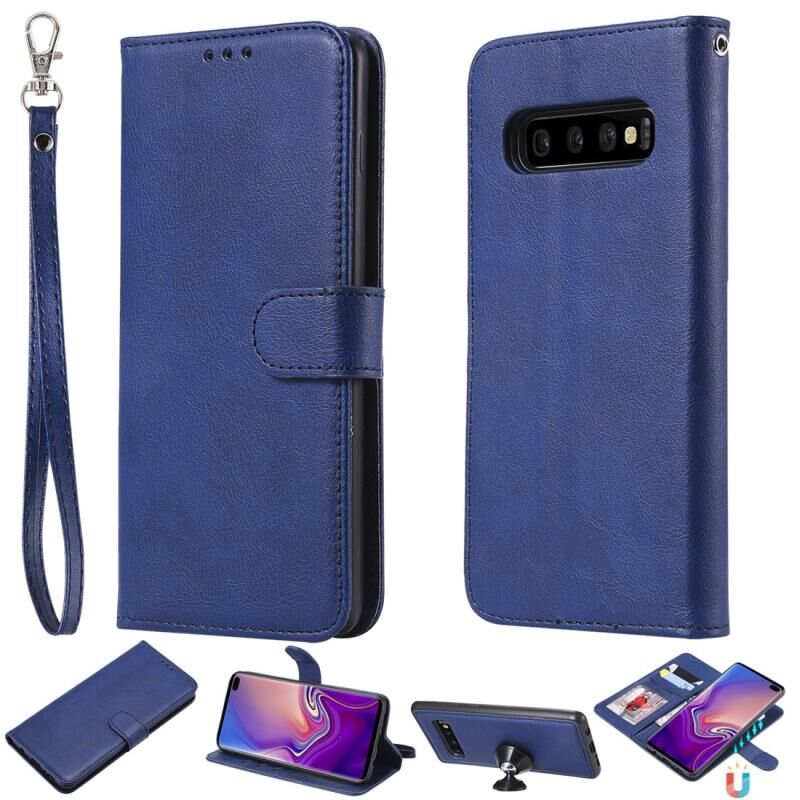 Για Galaxy S10+ Αμιγές χρώμα οριζόντια Flip προστατευτική θήκη με θήκη & υποδοχές για κάρτες & πορτοφόλι & πλαίσιο φωτογραφιών & κορδόνι (Μπλε)
