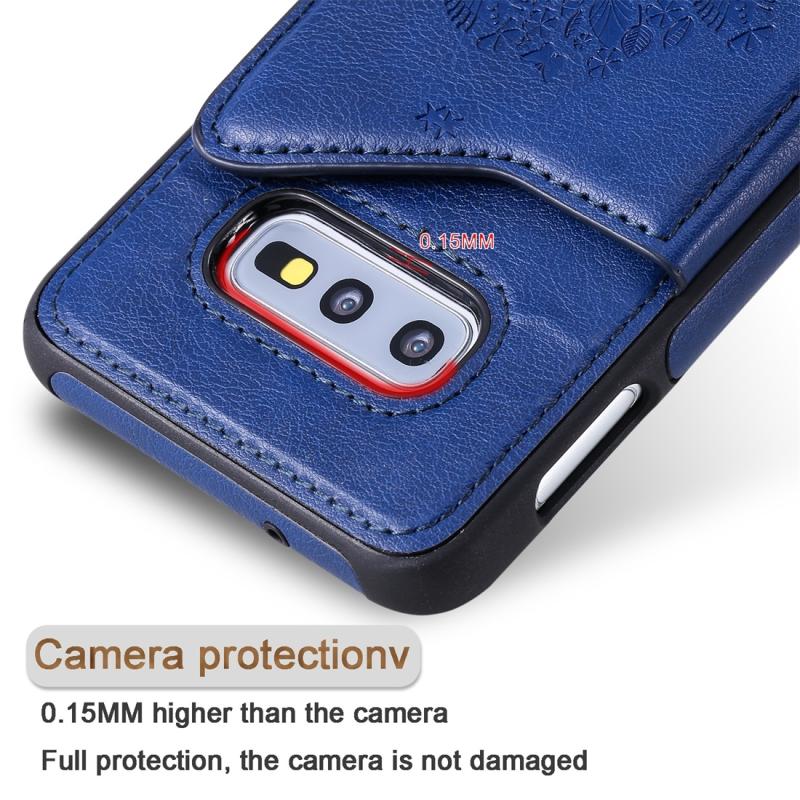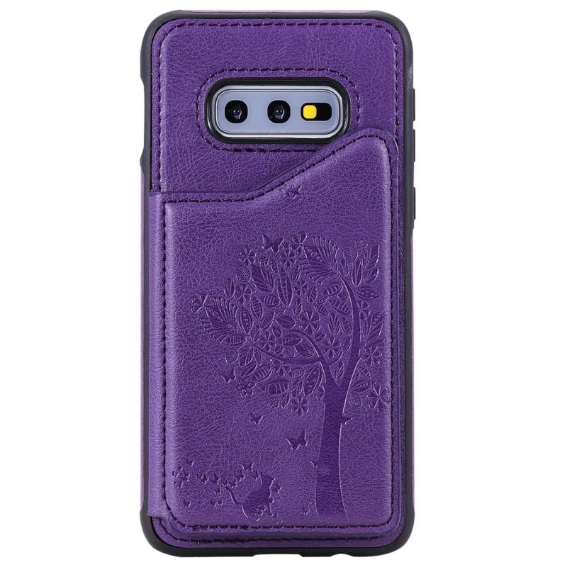 For Galaxy S10e Cat Tree Embossing Pattern Shockproof Protective Case with Card Slots & Photo Frame(Purple)