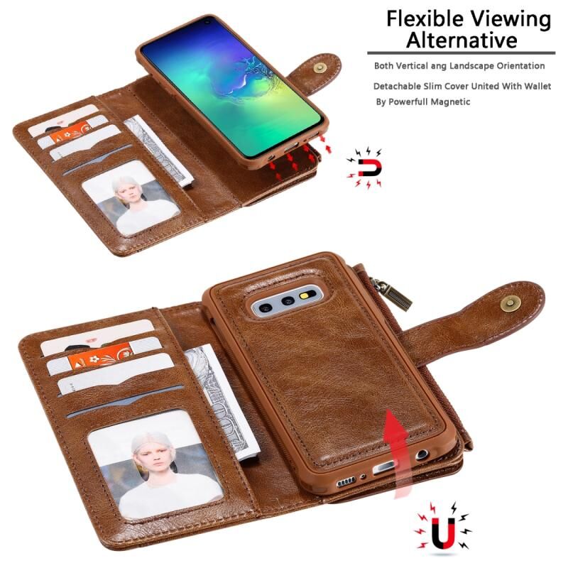 Για Galaxy S10e Πολυλειτουργική Ρετρό αποσπώμενη μαγνητική οριζόντια δερμάτινη θήκη με υποδοχές για κάρτες & θήκη για πορτοφόλι & κορνίζα φωτογραφιών (καφέ)