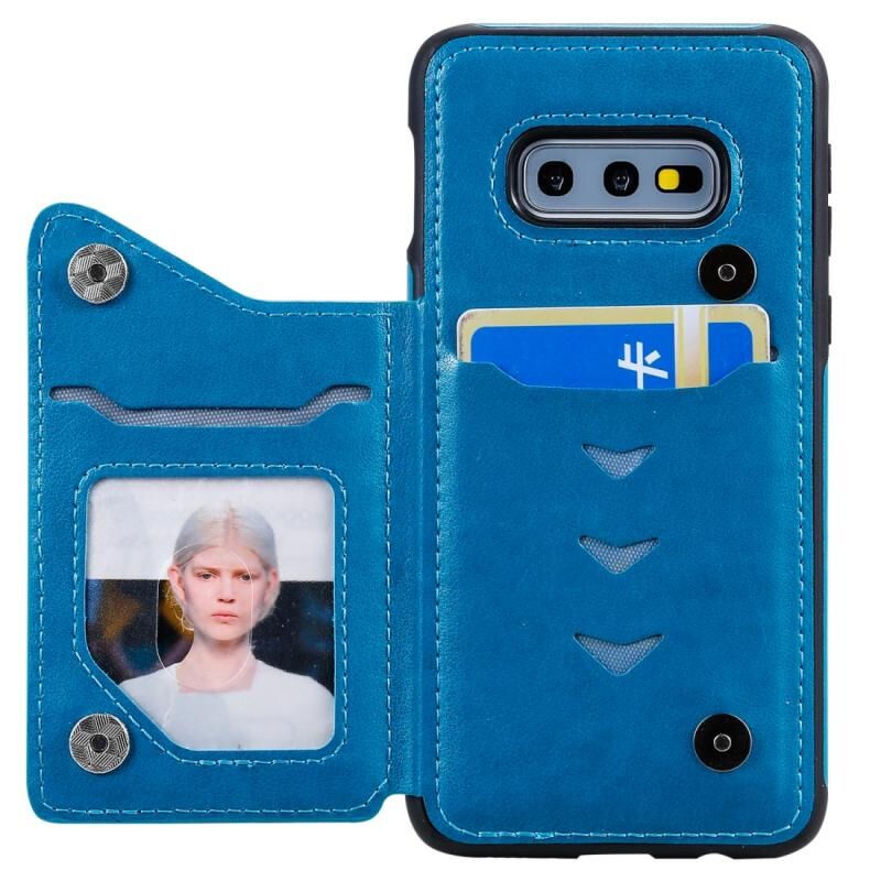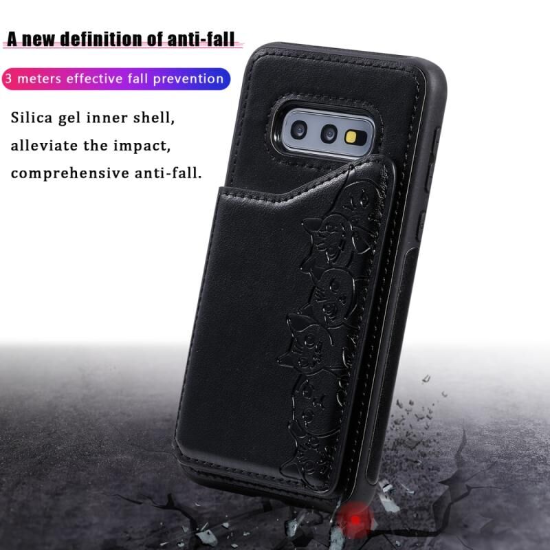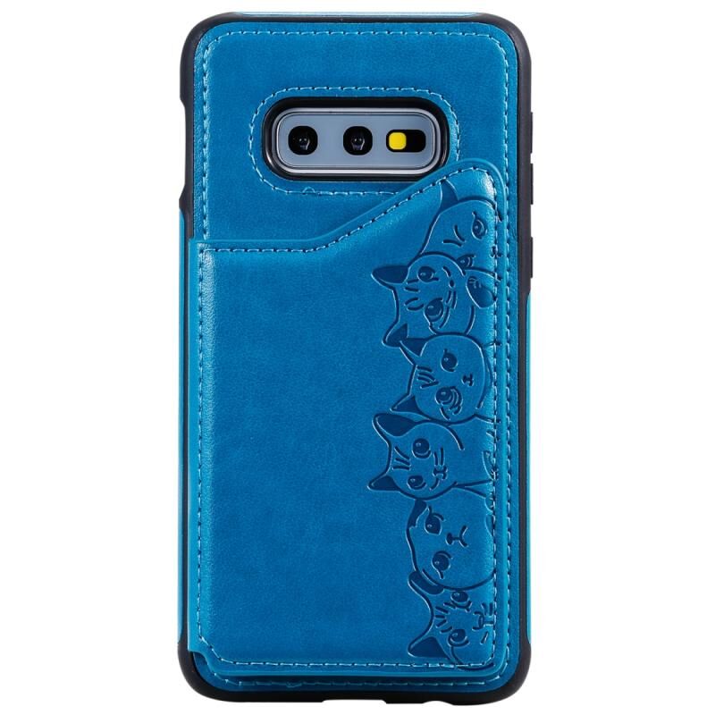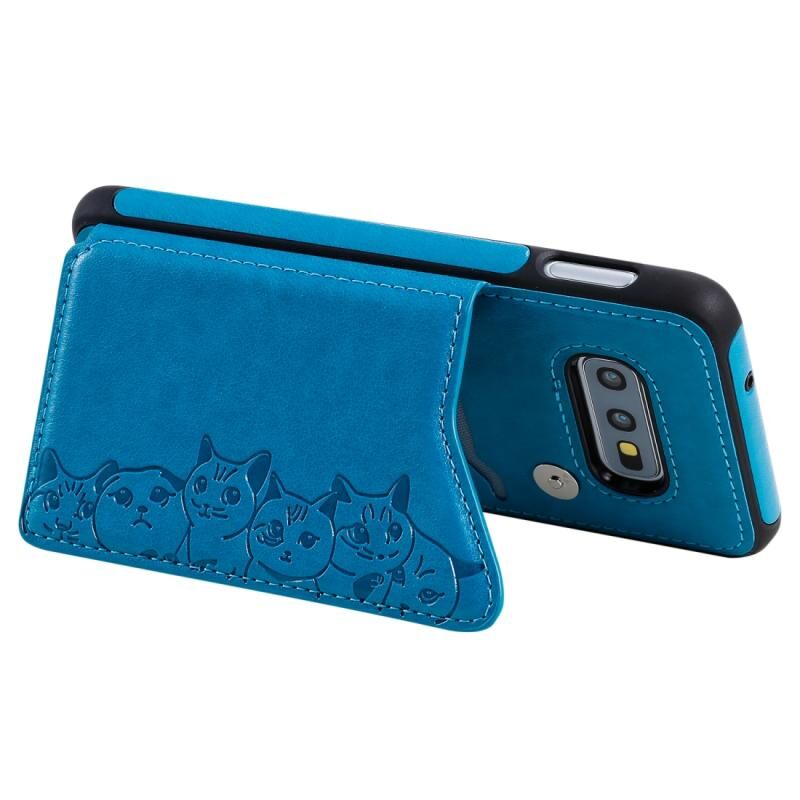 Θήκη προστασίας με ανάγλυφο σχέδιο έξι γατών για Galaxy S10e με βάση στήριξης & θήκες καρτών & κορνίζα φωτογραφιών (Μπλε)
