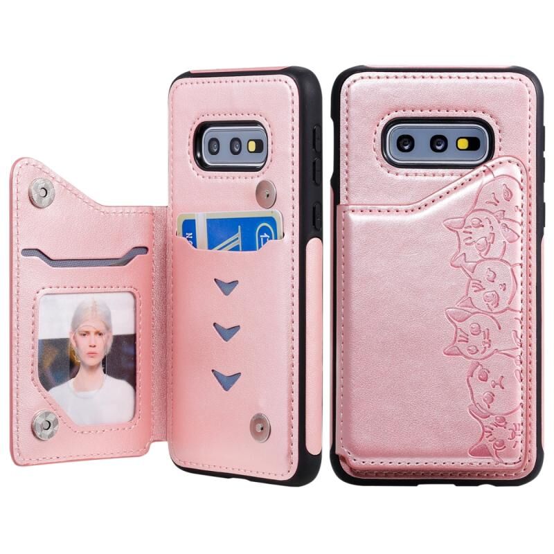 Θήκη προστασίας με ανάγλυφο σχέδιο έξι γατών για Galaxy S10e με βάση στήριξης & θήκες καρτών & κορνίζα φωτογραφιών (Ροζ χρυσός)