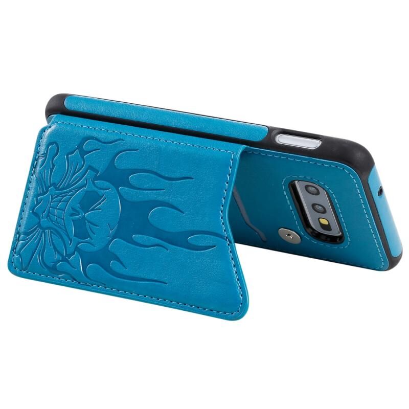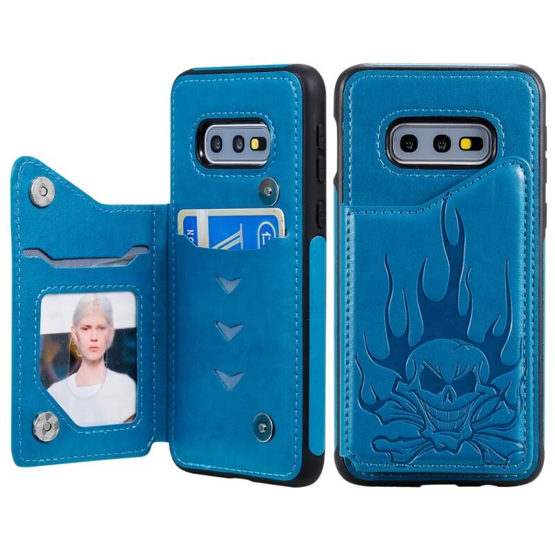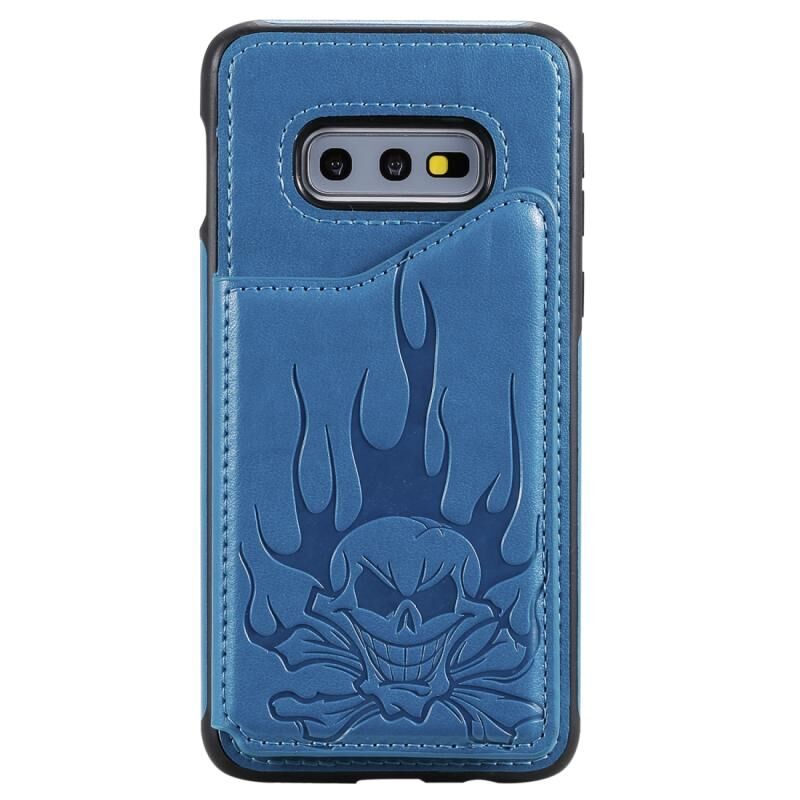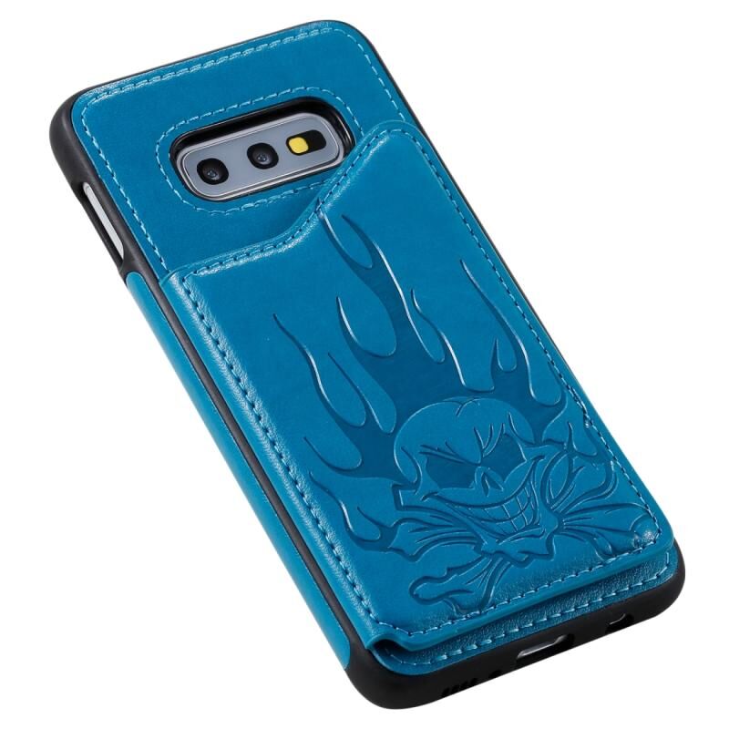 Θήκη προστασίας με ανάγλυφο σχέδιο κρανίου, αντικραδασμική για Galaxy S10e, με βάση στήριξης, θήκες για κάρτες και πορτοφόλι (Μπλε)