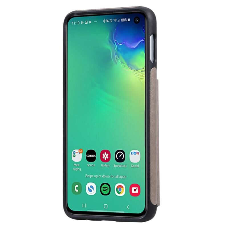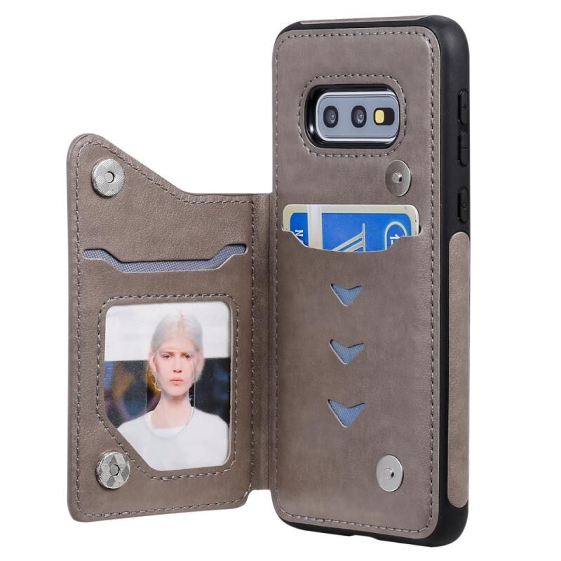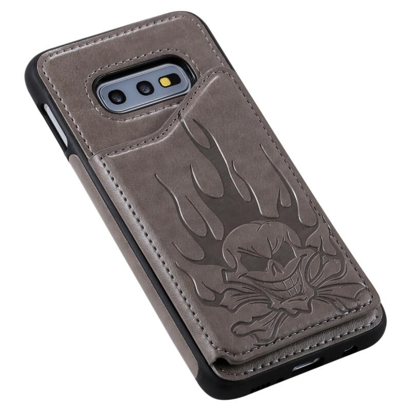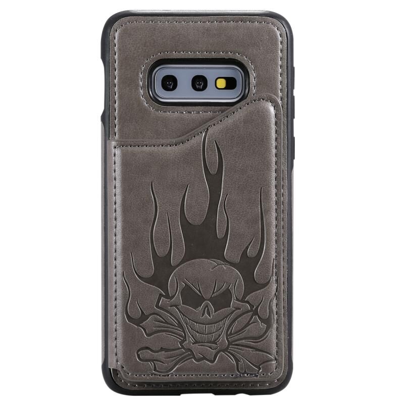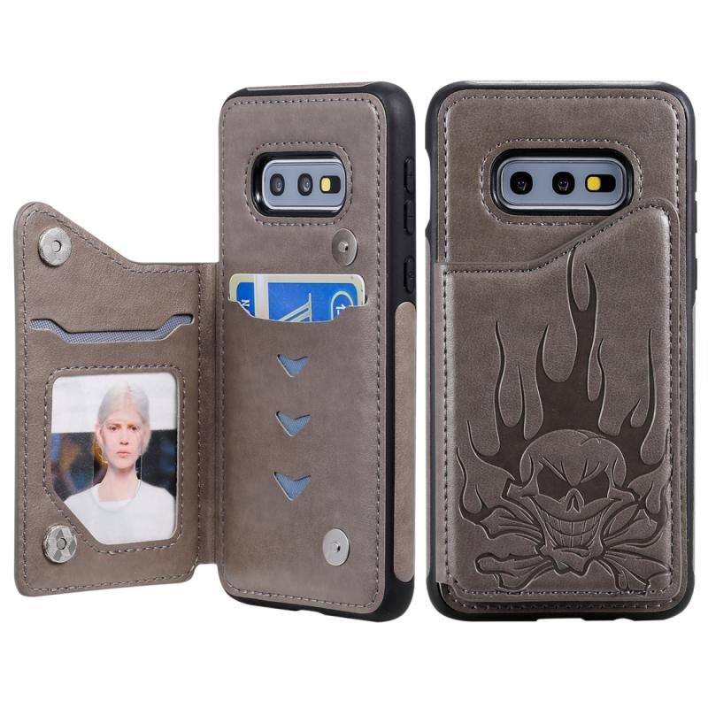 Θήκη προστασίας με ανάγλυφο σχέδιο κρανίου, αντικραδασμική για Galaxy S10e, με βάση στήριξης, θήκες καρτών και πορτοφόλι (Γκρι)